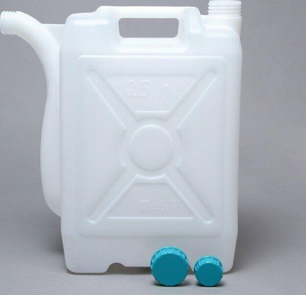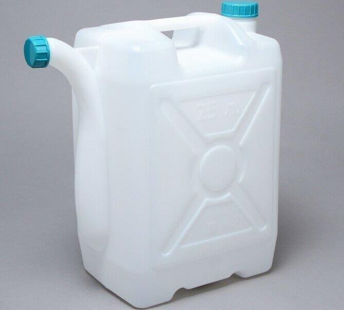 Канистра изготовлена из прочного пищевого пластика и предназначена для транспортировки и хранения воды и других пищевых жидкостей. Изделие безопасно для здоровья, герметично, устойчиво к температурным перепадам (от -20 до +40°С), легко очищается и не впитывает нежелательных запахов. Канистра имеет основное отверстие для заполнения жидкостью и дополнительное устье для удобного слива. Объем 25л. Вес 0.789 кг. Размеры изделия (ДхШхВ) 400х200х470 мм. Цвет крышек варьируется