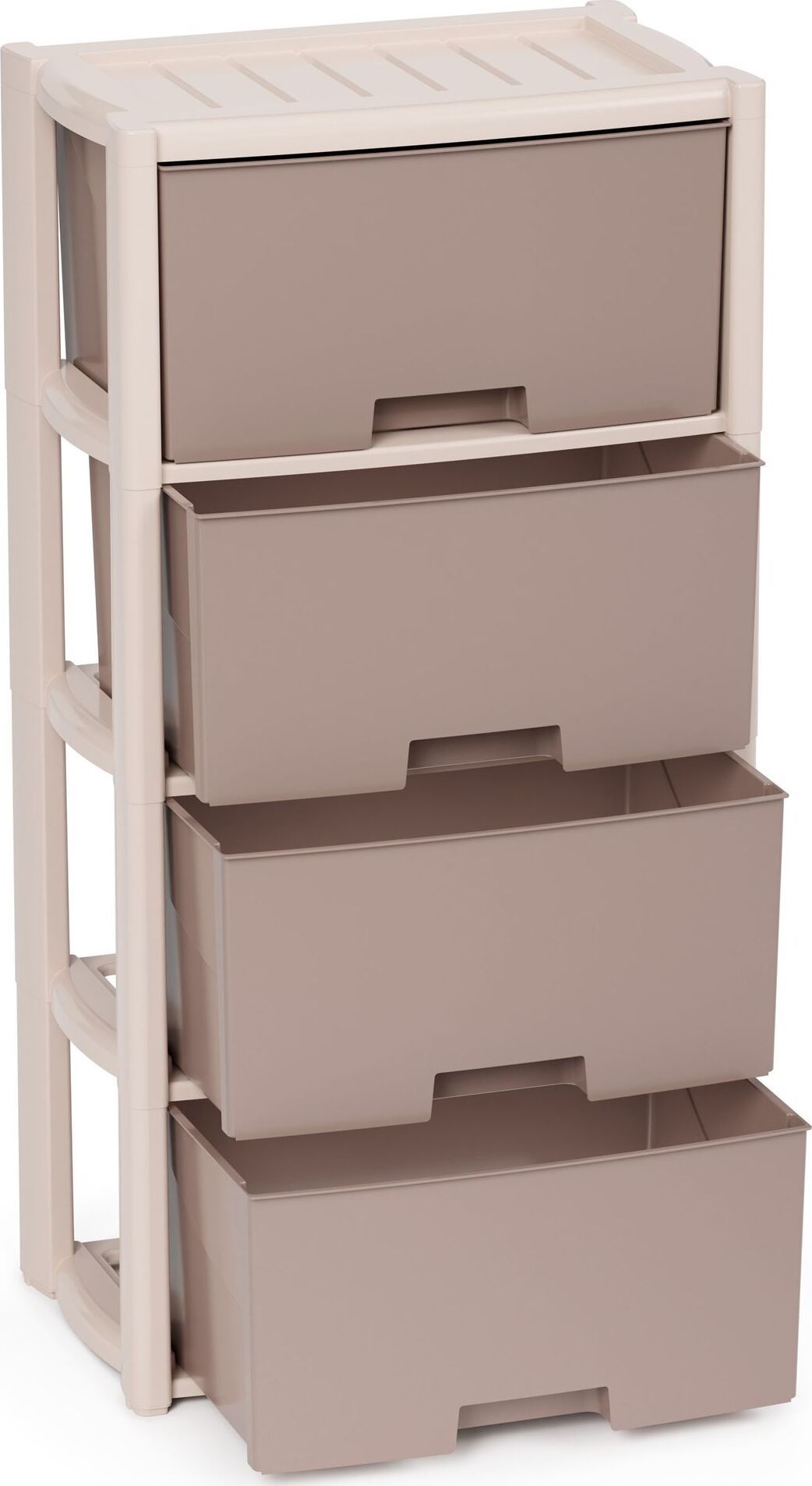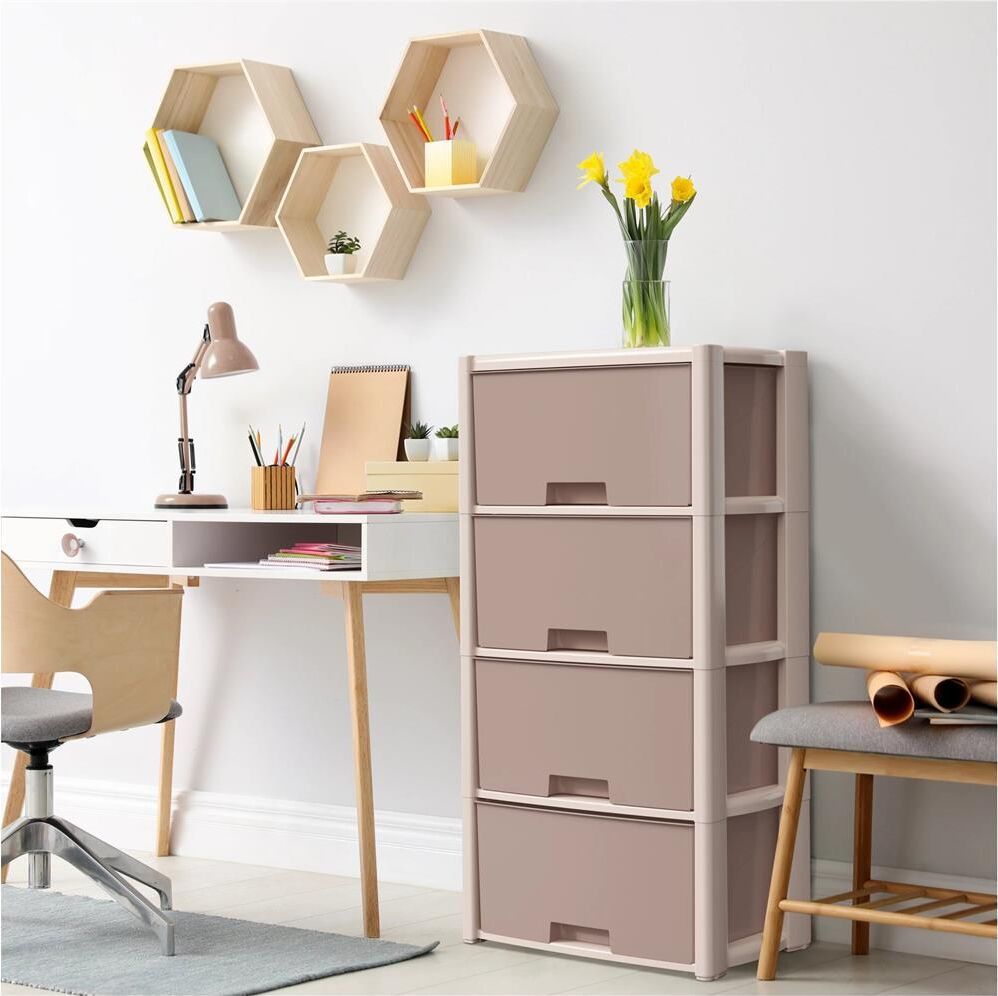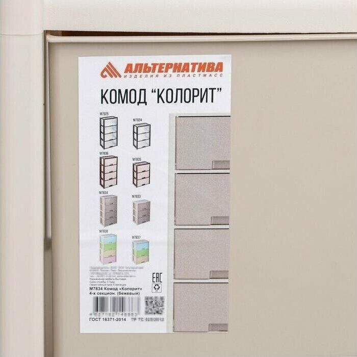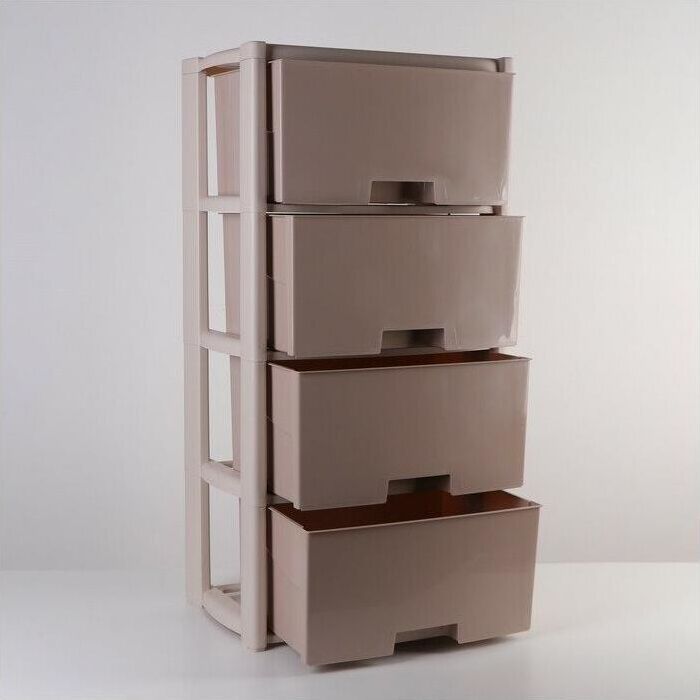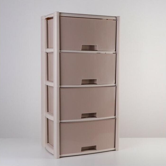 Комод произведен из высококачественного и безопасного полипропилена. Особую прочность комоду придает его цельная конструкция перегородок. Комод имеет выдвижные и достаточно вместимые ящики. На крышке и перегородках предусмотрены ограничители. Объём упаковки 0.14 м3. Размеры упаковки (ДхШхВ) 490х300х950 мм.