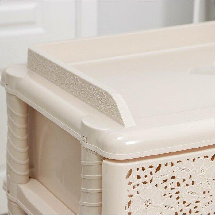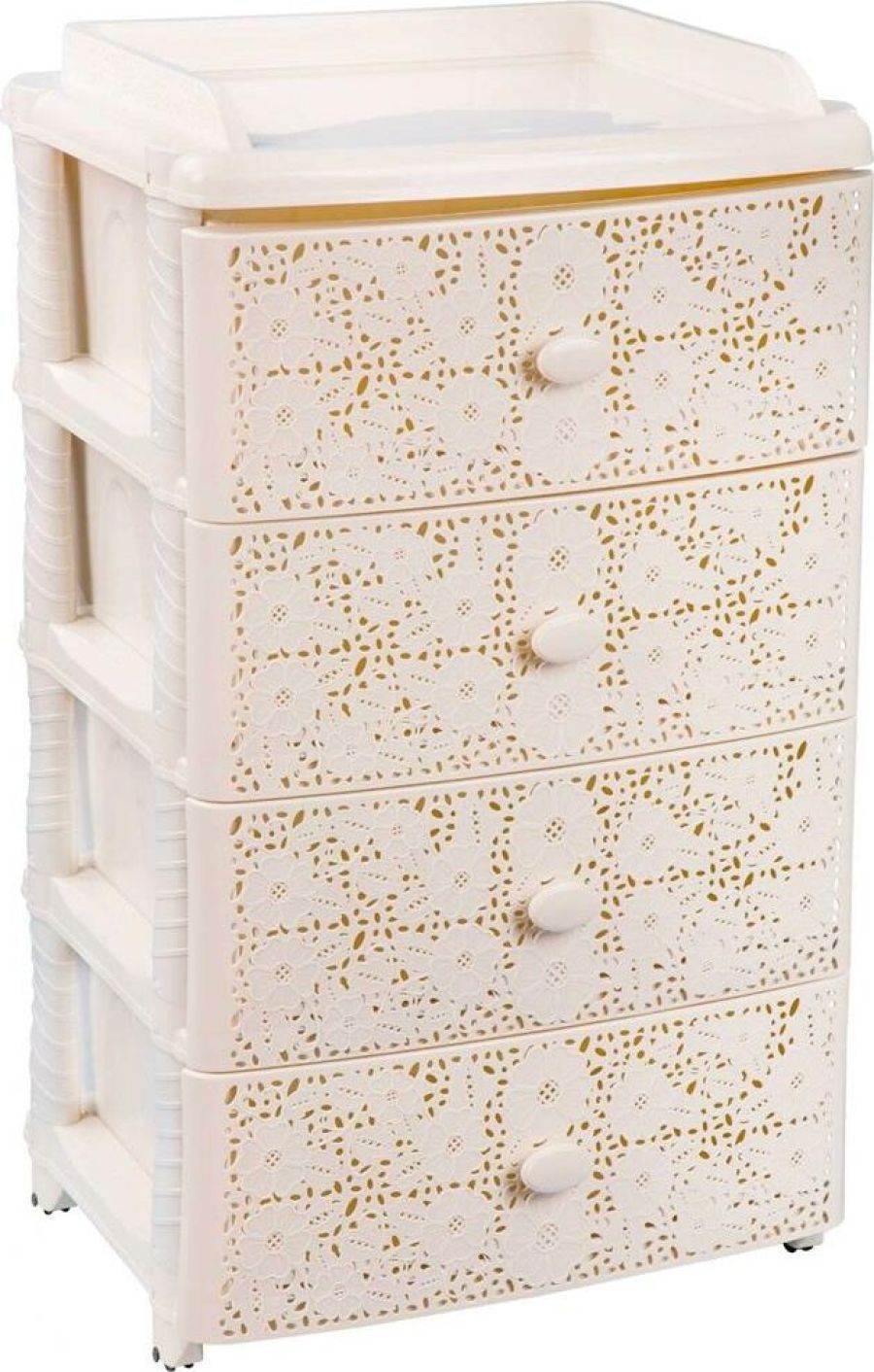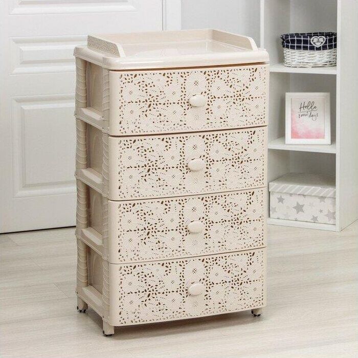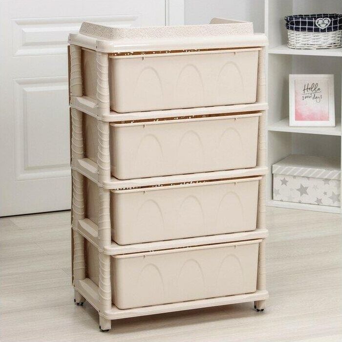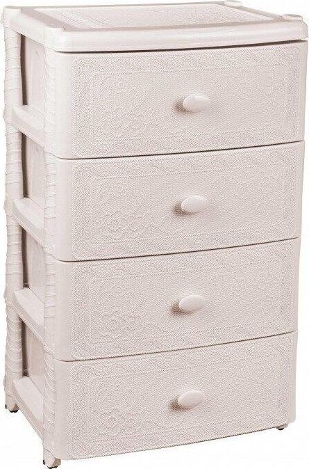 Изделие способно гармонично вписаться в интерьер любой комнаты. Комод произведен из высококачественного и безопасного полипропилена. Комод имеет четыре выдвижных ящика, большой вместимости, в которых будет очень удобно хранить личные вещи и другие принадлежности. Вес 6.2 кг. Размеры изделия (ДхШхВ) 425х560х925 мм.