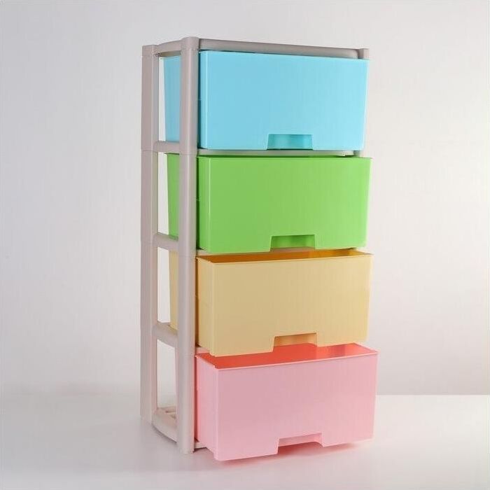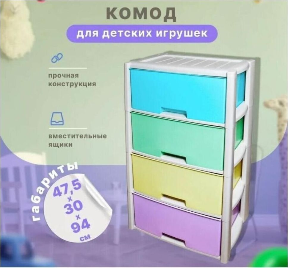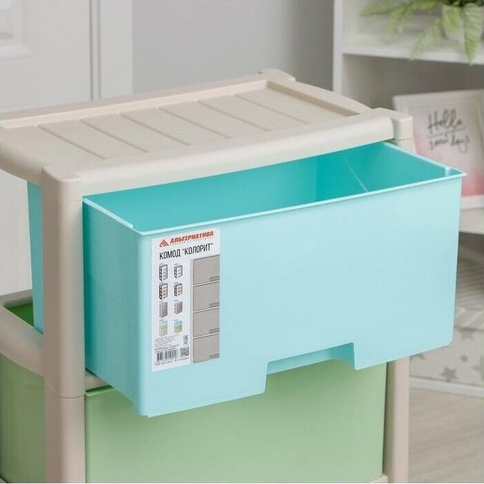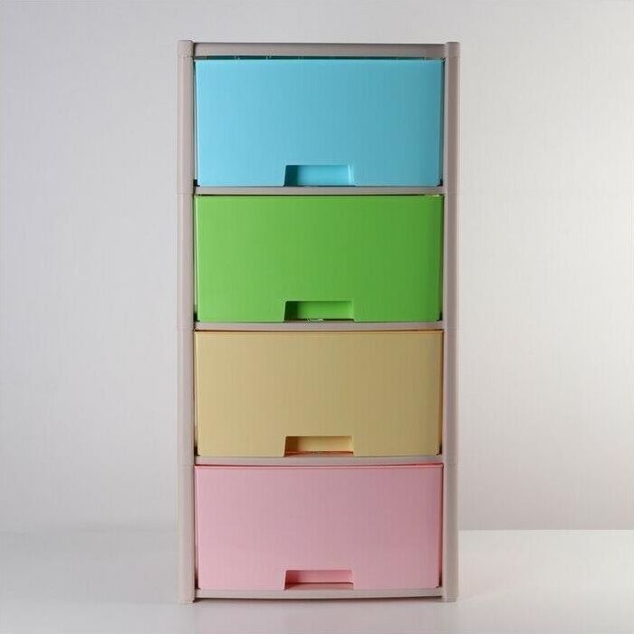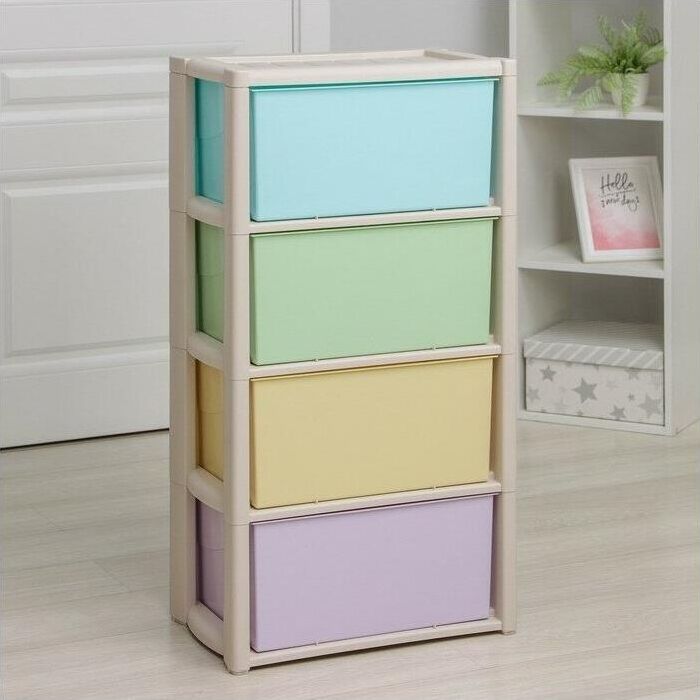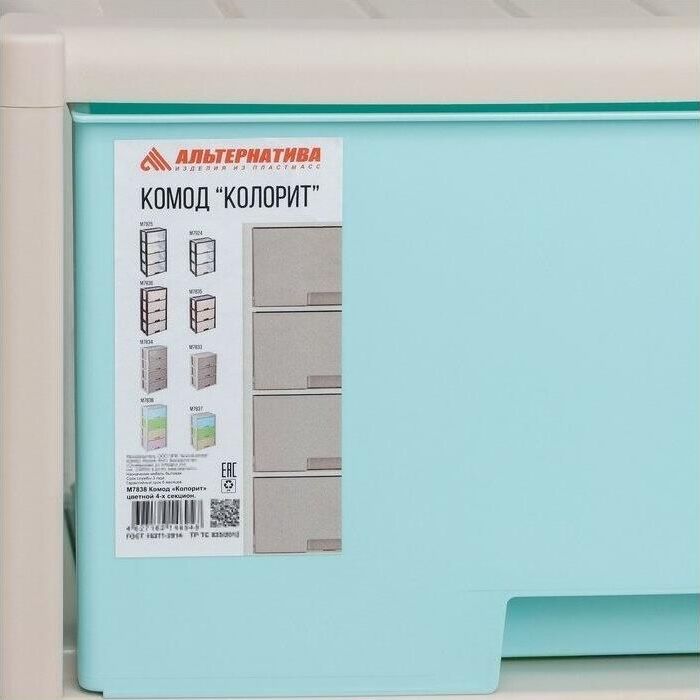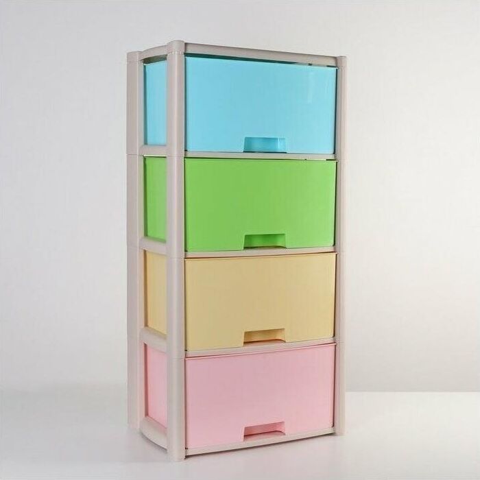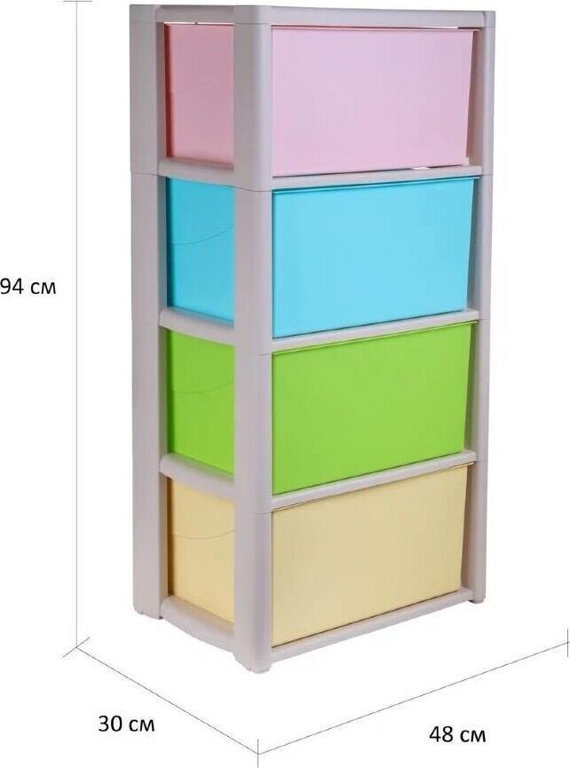 Комод "Колорит" цветной, 4-х секционный, Вес 4.012 кг, Размеры изделия (ДхШхВ) 475х300х940 мм. Комод произведен из высококачественного и безопасного полипропилена. Особую прочность комоду придает его цельная конструкция перегородок. Комод имеет выдвижные и достаточно вместимые ящики. На крышке и перегородках предусмотрены ограничители, благодаря которым ящик не будет вылетать при открывании. Такой комод станет отличным решением для организации хранения практически в любой комнате вашей квартиры или дома. Благодаря цветовому решению и современному дизайну, комод гармонично впишется в интерьер любой комнаты. Благодаря небольшому весу и компактному размеру, комод легко устанавливается и передвигается. Комод упаковывается в индивидуальную упаковку и будет поставляться уже в собранном виде.
