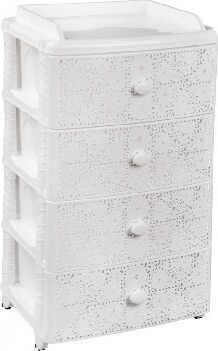 Изделие способно гармонично вписаться в интерьер любой комнаты. Комод произведен из высококачественного и безопасного полипропилена. При производстве используется только сертифицированное и экологически чистое, качественное сырье отечественных и зарубежных производителей. Данное изделие произведено на современном технологичном оборудовании, а потому отличается прочностью и устойчивостью разнообразным механическим воздействиям. Также особую прочность изделию придает цельная конструкция перегородок. Комод имеет четыре выдвижных ящика, большой вместимости, в которых будет очень удобно хранить личные вещи и другие принадлежности. Вес 6.2 кг. Размеры изделия (ДхШхВ) 425х560х925 мм.