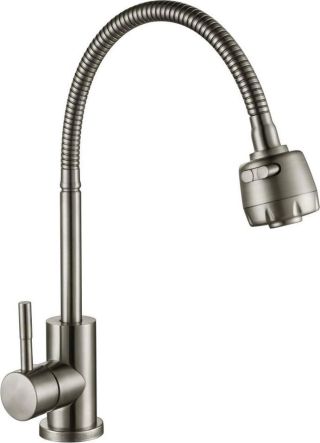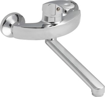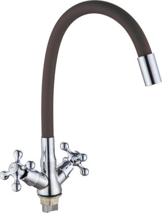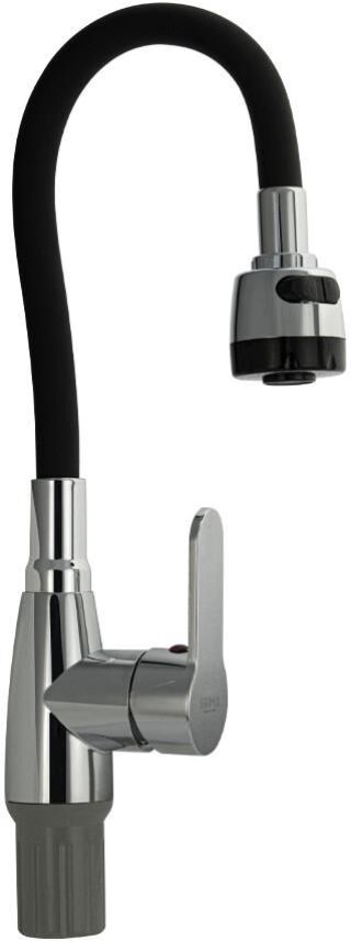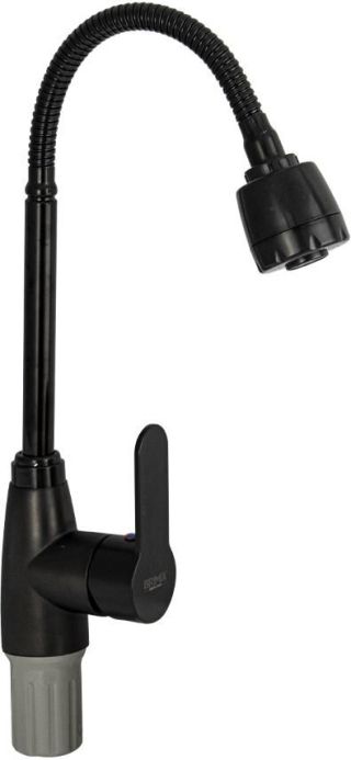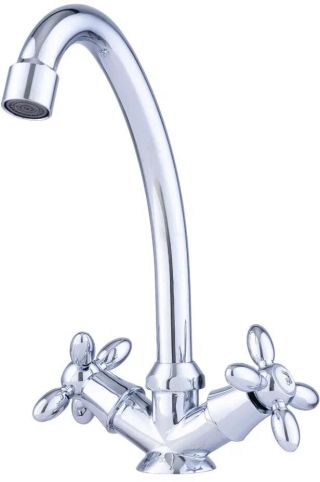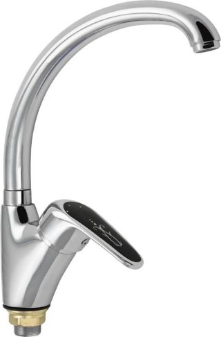 "Смеситель для кухни с длинными изливом, GR - Материал: прочный сплав алюминия с кремнием - Покрытие: никель-хромовое - Цвет: хром - Картридж: ø35мм, пластиковая с керамическими пластинами, брендированный GR - Излив: короткий, длина 235мм, высота - 140мм - Аэратор: пластиковый, съемный, наруж. резьба, ø24мм - Крепление: шпилька (1шт.) В комплекте: паспорт (1шт.)"
