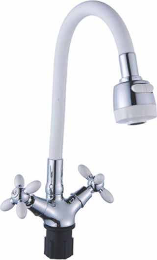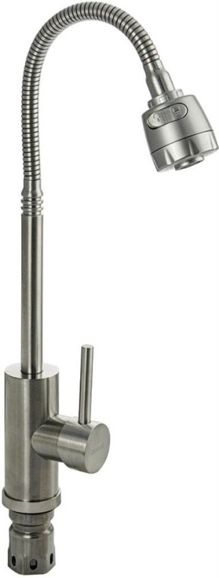 "Смеситель для кухни с высоким изливом, GR - Материал: прочный сплав алюминия с кремнием - Покрытие: никель-хромовое - Цвет: хром - Кран-букса: 1/2"" дюйма, пластиковая с керамическими пластинами, угол поворота 90° - Излив: высокий, высота излива – 199 мм - Аэратор: пластиковый, съемный, внутр. резьба, ø22мм - Крепление: гайка В комплекте: паспорт (1шт.)"
