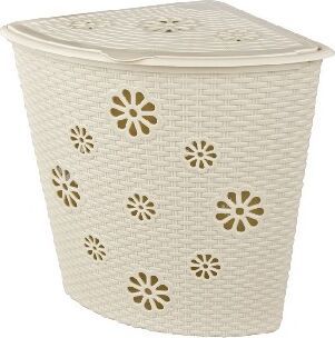 Угловая корзина изготовлена из прочного пластика и отлично подойдет для хранения белья перед стиркой. Данное изделие оснащено крышкой, что поможет скрыть содержимое корзины. Стенки корзины имитированы под плетение с небольшими отверстиями в форме цветов, которые создают идеальные условия для проветривания. Удобная и компактная корзина прекрасно впишется в интерьер любой ванной комнаты. Вес 1.466 кг. Размеры изделия (ДхШхВ) 385х500х460 мм.