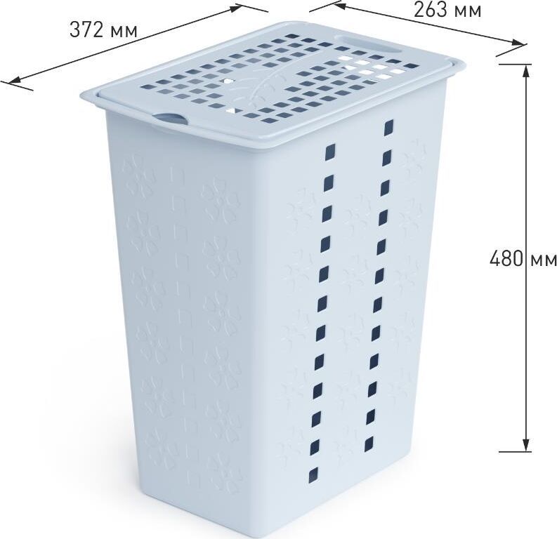 Корзина отлично подойдет для хранения белья перед стиркой. Данное изделие оснащено крышкой, что поможет скрыть содержимое корзины от посторонних. У корзины есть небольшие отверстия в форме цветов и квадратов, которые создают идеальные условия для проветривания. Корзина для белья «Виолетта» прекрасно впишется в интерьер любой ванной комнаты. Вес 0.791 кг. Размеры изделия (ДхШхВ) 375х250х480 мм.