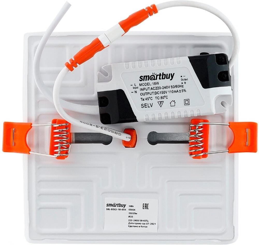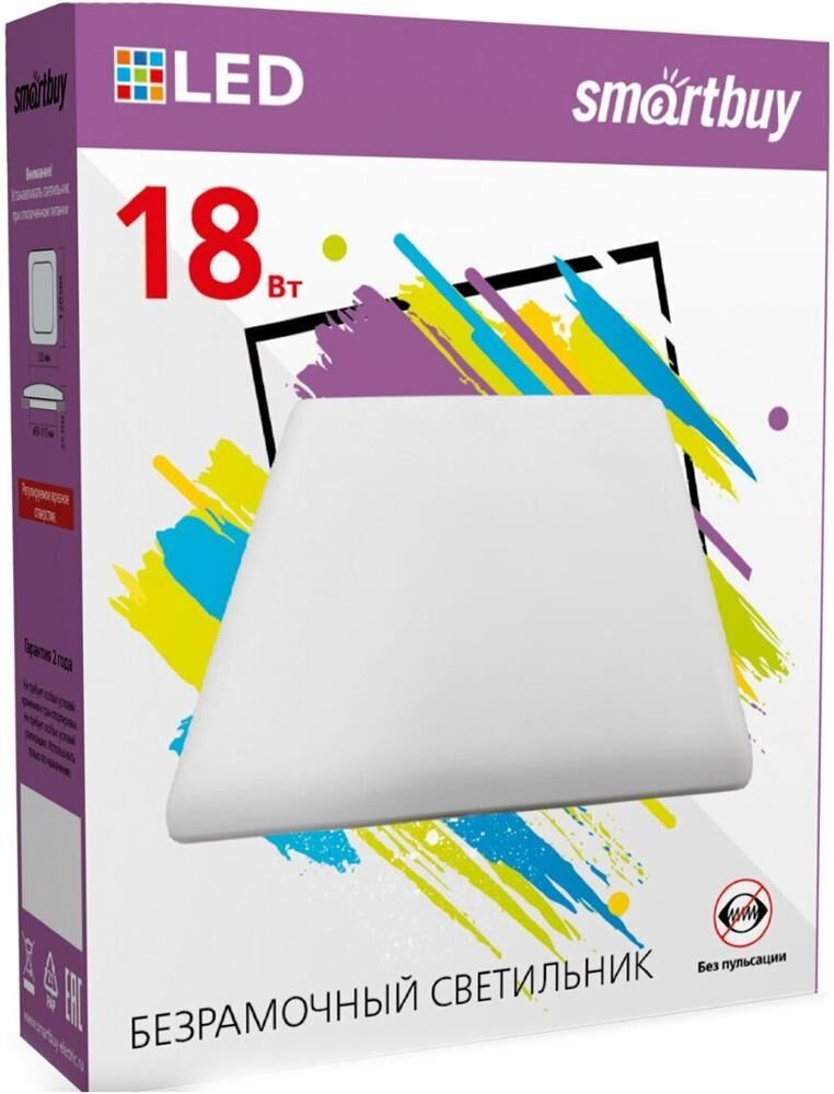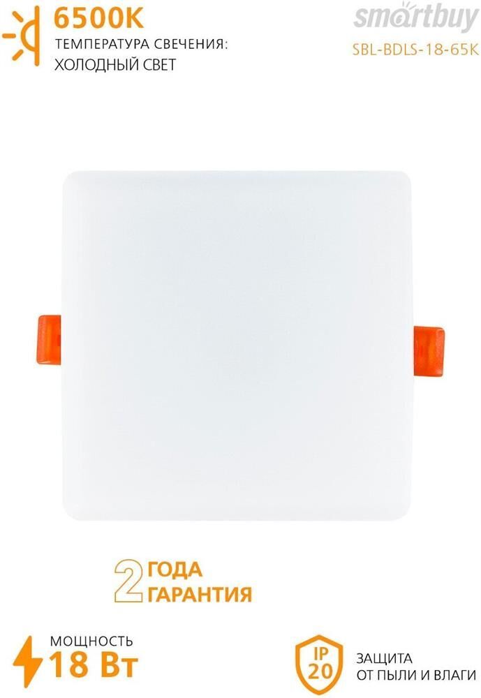Характеристики SBL-BDLS-18-65K Мощность, Вт 18 Размеры, мм 120*120*25 Диаметр врезного отверстия, мм Регулируется 50-110 Вид ламп Светодиодная Температура света, К 6500 Световой поток, Лм 1500 Свет Дневной белый Цвет плафона Белый Материал плафона Пластик Вид питания От сети 220В Напряжение питания, В 220 Количество режимов 1 Тип выключателя Механический Упаковка Картонная коробка Комплектация Светильник светодиодный безрамочный - 1 шт. Гарантия 12 мес Страна-изготовитель Китай