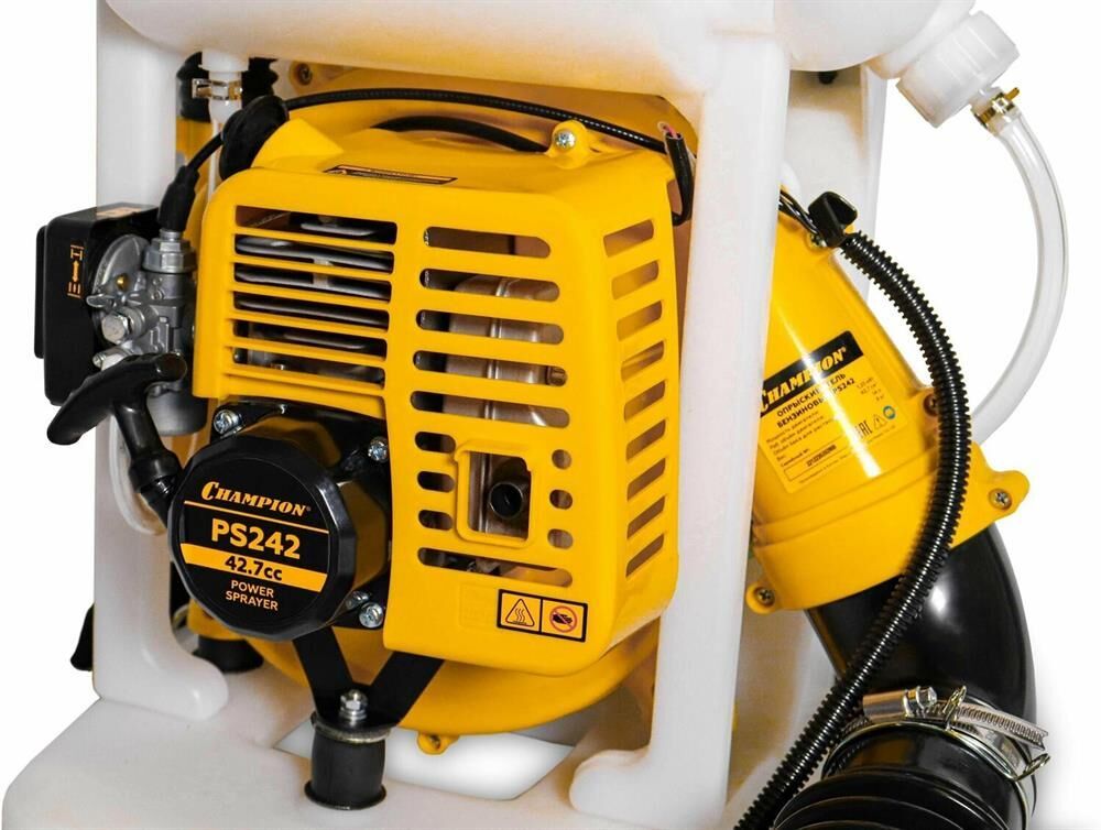 Тип устройства опрыскиватель. Мощность двигателя, (кВт/л.с) 1,25/1,7. Вес, (кг) 9. Дальность распыления максимальная, (м) 15. Объем бака для химических препаратов, (л) 14. Рабочий объем двигателя, (см3) 42,7. Объем топливного бака, (л) 1,8. Максимальный расход топлива, (г/кВт•ч)/(л/ч) 620/1,2. Обороты холостого хода, (об/мин) 2800. Максимальные обороты без нагрузки, (об/мин) 7500. Уровень мощности звука, (дБ) 98. Уровень звукового давления, (дБ) 95. Уровень вибрации, (м/с2) 9,8.