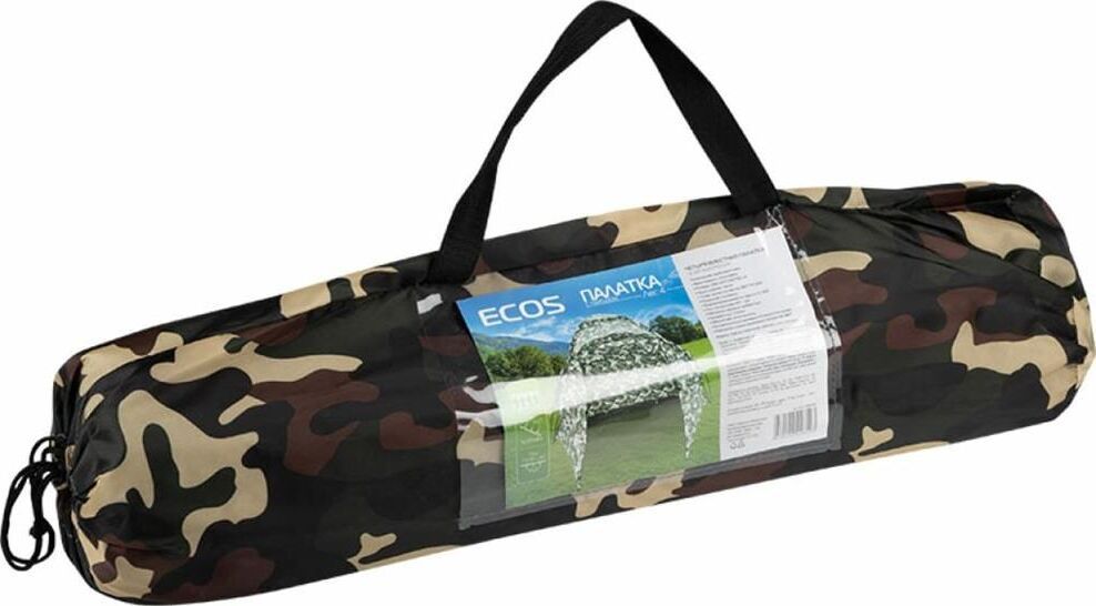 Не автоматическая Вместимость: 4 человека Размер: (100+210)*210*130 см Однослойная, 1 вход Ткань тента: полиэстер 180T РА 500 Покрытие: полиамид Водонепроницаемость (мм/в.ст): 500 Пол: полиэтилен 110 г /м2 Материал каркаса: фибергласс Диаметр дуг: 7,9 мм Москитная сетка на вход В комплекте штормовые оттяжки (6 шт) и колышки (12 шт) Материал сумки-переноски: полиэстер 180T