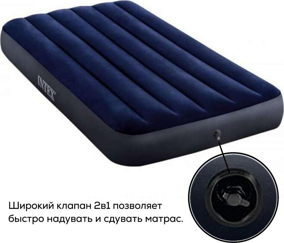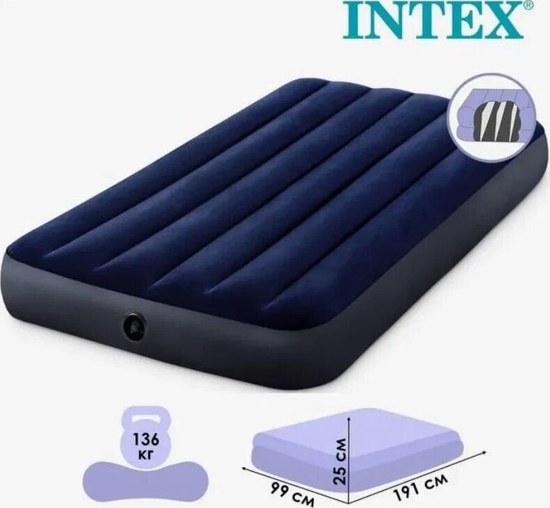Надувной матрас CLASSIC DOWNY AIRBED FIBER-TECH — незаменимое приобретение для любителей больших компаний. За считанные минуты он превращается в спальное место размером 99x191x25 см! Флокированное покрытие матраса не даёт соскальзывать белью, и в то же время легко чистится. Накачать матрас можно любым механическим или электрическим насосом Intex.