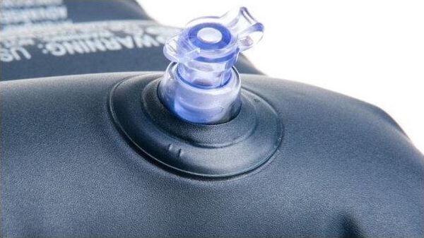 Надувная подушка обеспечивает правильное положение головы во время сна, способствует полноценному отдыху. Она изготовлена из очень мягкого, бархатистого водоотталкивающего материала. Размер: 43x28x9 см.