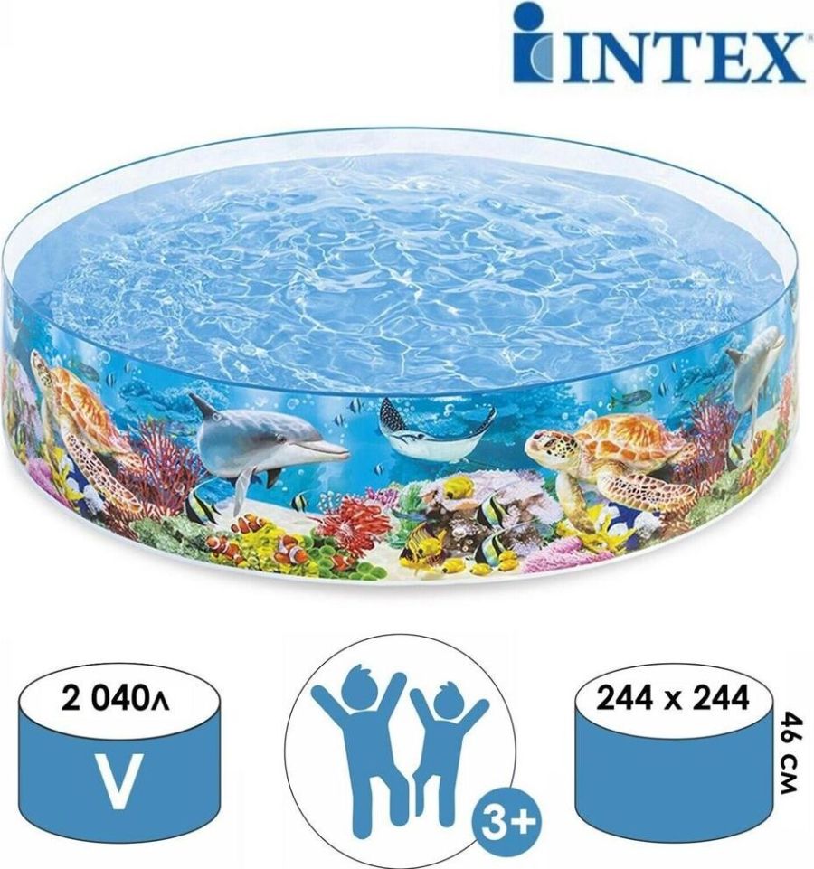 Ненадувной бассейн с плоским бортом "Океан" INTEX — это простая конструкция, с которой семейный досуг на природе будет весёлым и приятным. Жарким летним днём он станет комфортной зоной отдыха, где детки будут радостно плескаться вместе с родителями. Размер: 244x46 см.