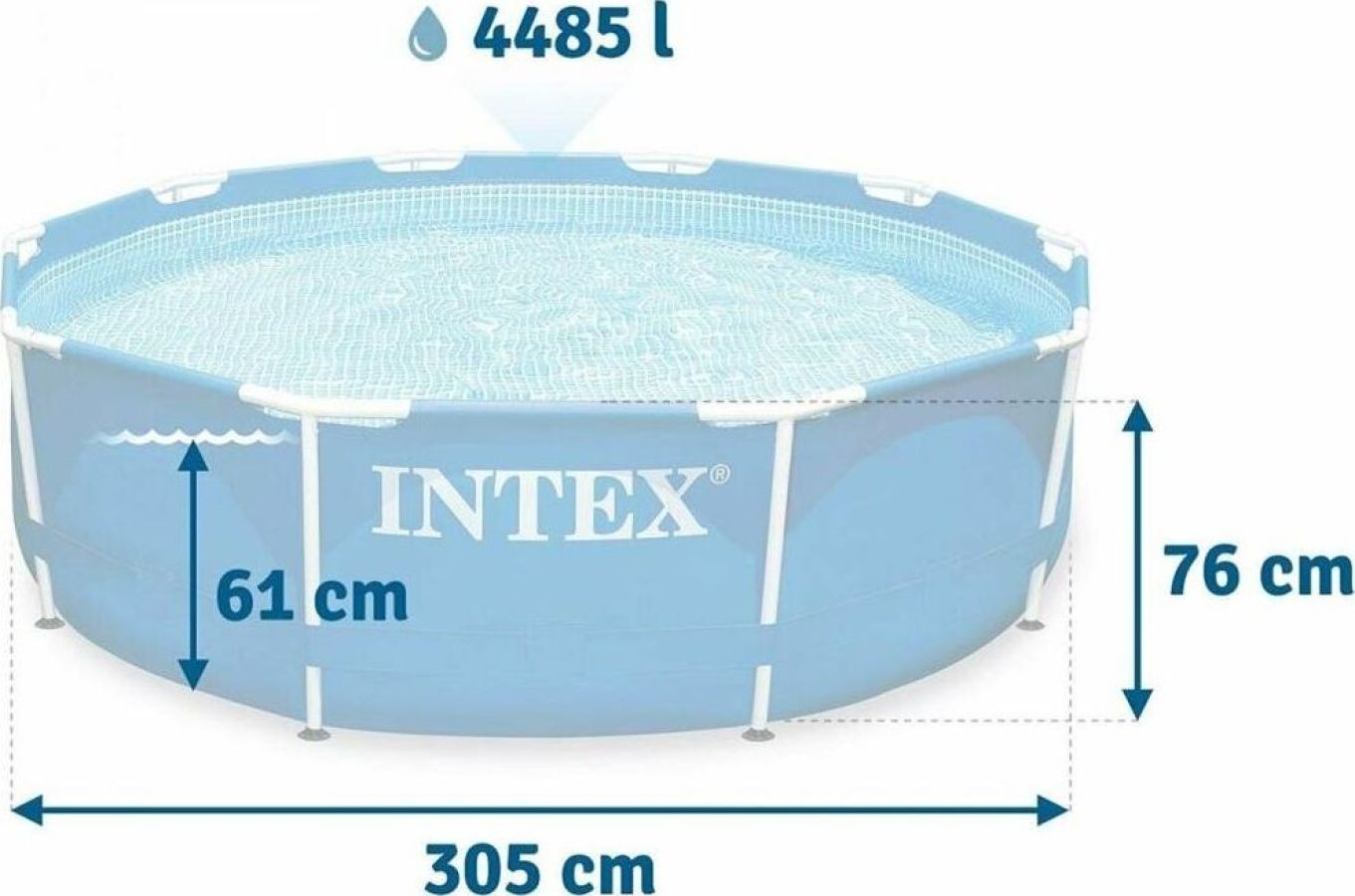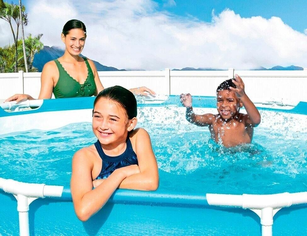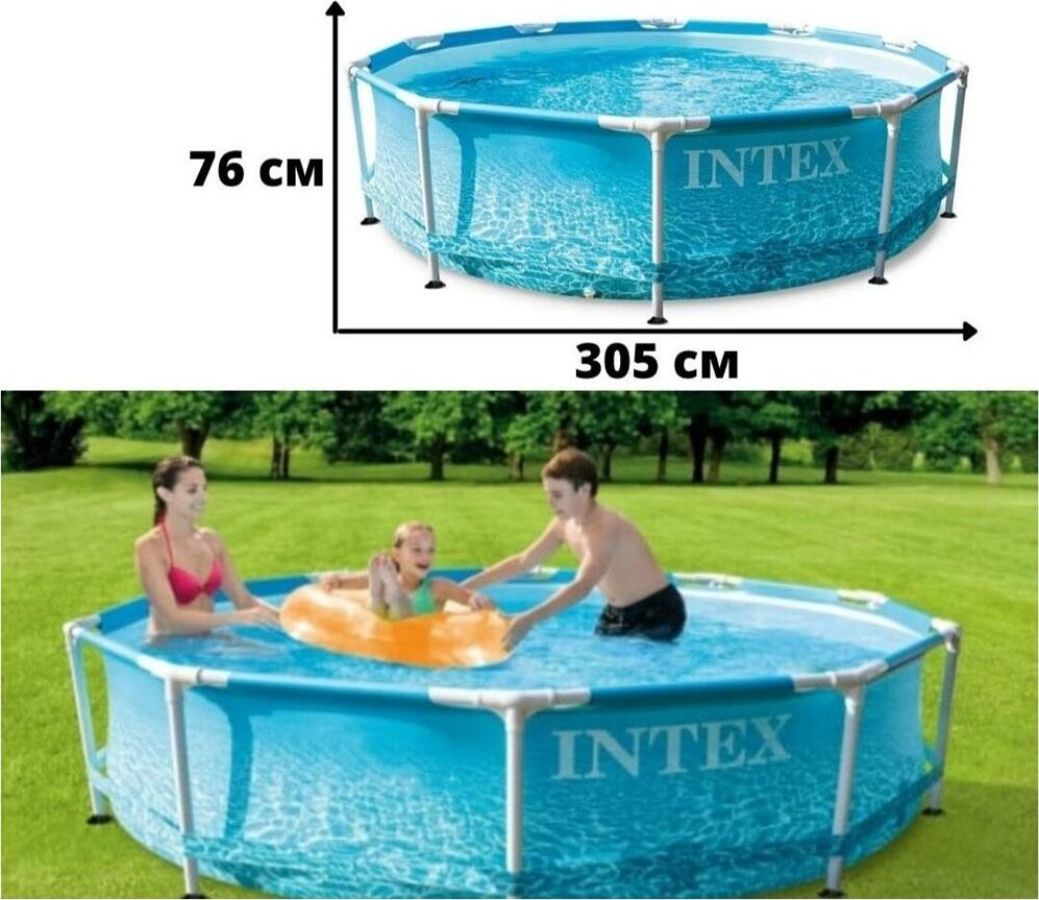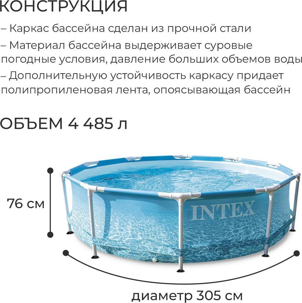 Каркасный бассейн — это простая конструкция, с которой семейный досуг на природе будет весёлым и приятным. Он порадует детей и взрослых в теплые солнечные деньки. Постоянная форма бассейна обеспечивается прочным металлическим каркасом, который может выдержать большие нагрузки. Размер: 305х76 см (4485 л).