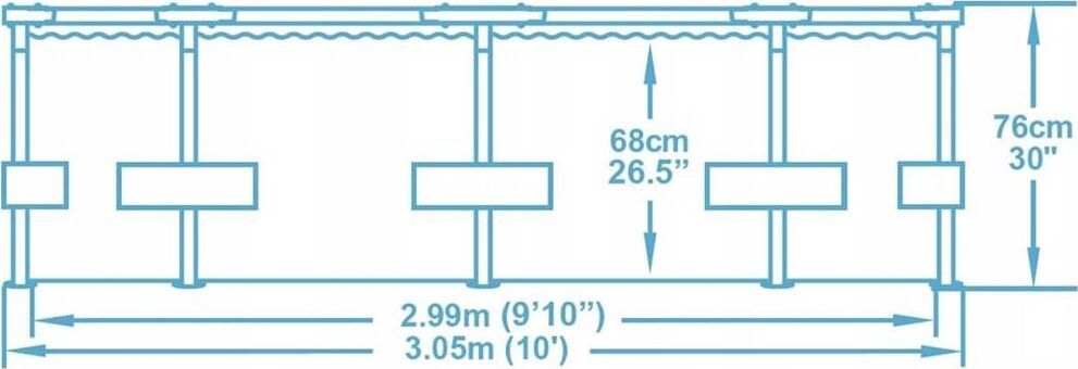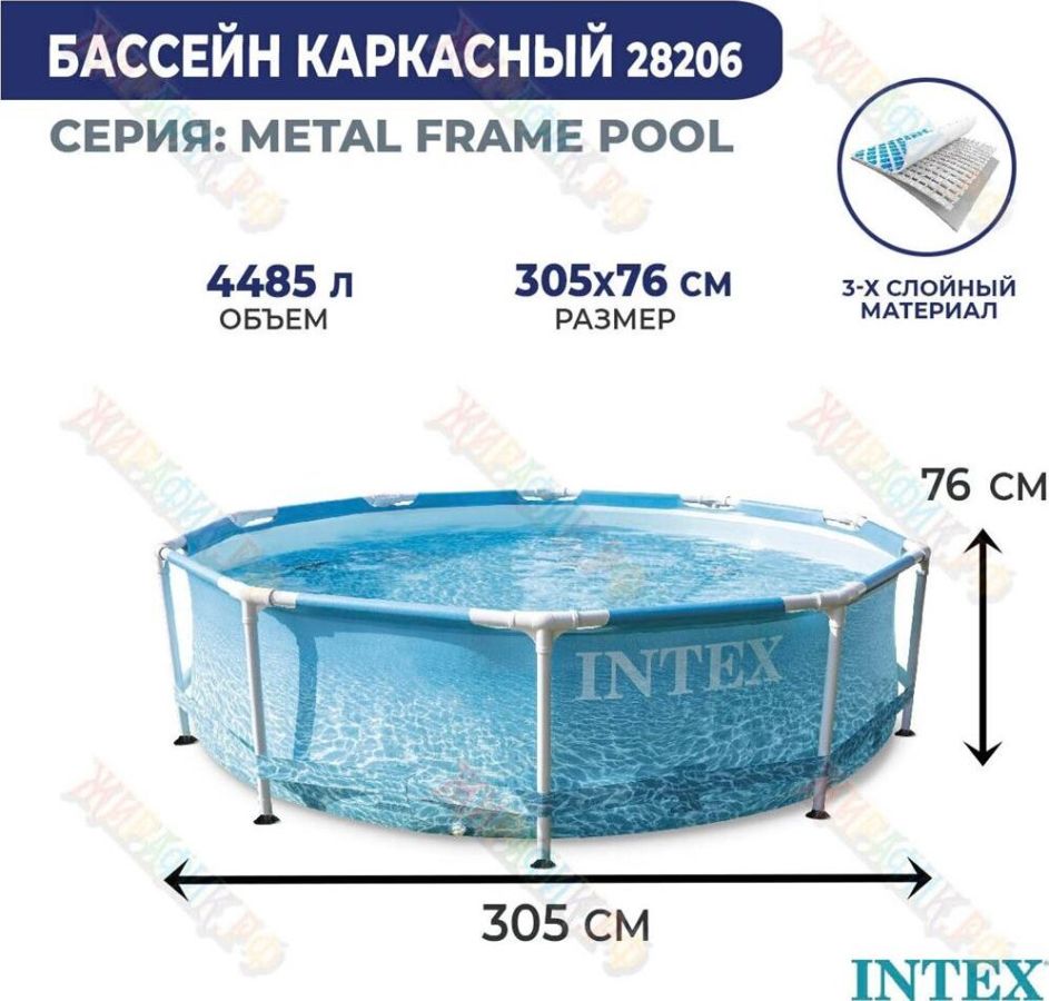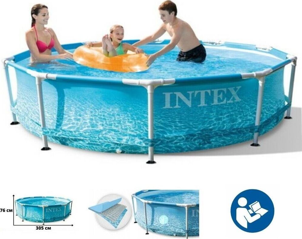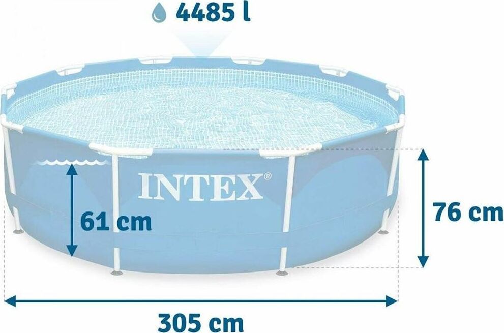 Каркасный бассейн — это простая конструкция, с которой семейный досуг на природе будет весёлым и приятным. Он порадует детей и взрослых в теплые солнечные деньки. Постоянная форма бассейна обеспечивается прочным металлическим каркасом, который может выдержать большие нагрузки. Размер: 305х76 см (4485 л).