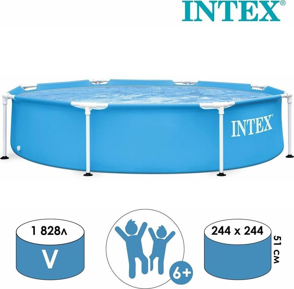 Каркасный бассейн — это простая конструкция, с которой семейный досуг на природе будет весёлым и приятным. Он порадует детей и взрослых в теплые солнечные деньки. Постоянная форма бассейна обеспечивается прочным металлическим каркасом, который может выдержать большие нагрузки. Размер: 244х51 см (1828 л).