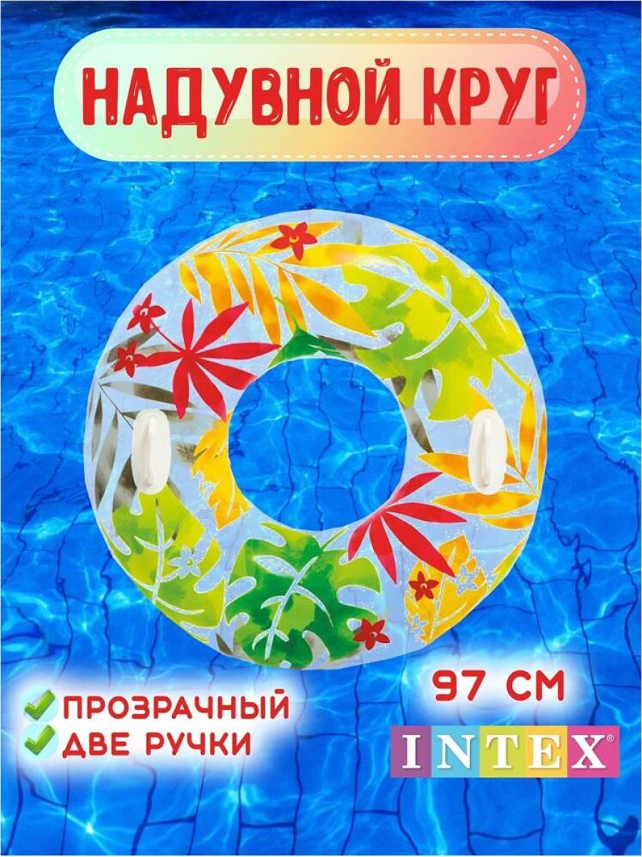 Надувной круг для плавания "Прозрачный с ручками" INTEX изготовлен из экологически чистого ПВХ, без запаха. Размер в надутом состоянии: 97 см. Возраст: 9+ лет