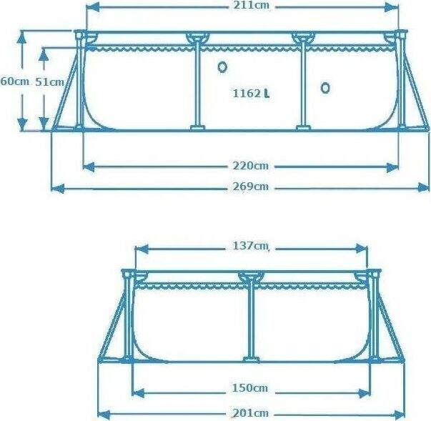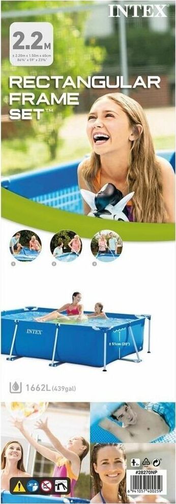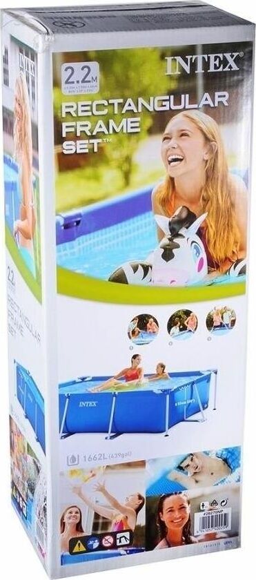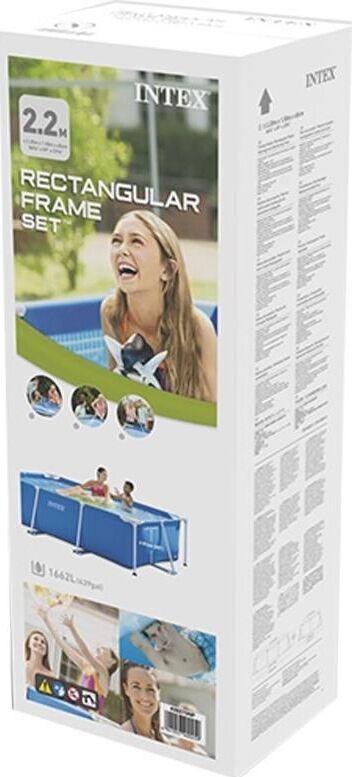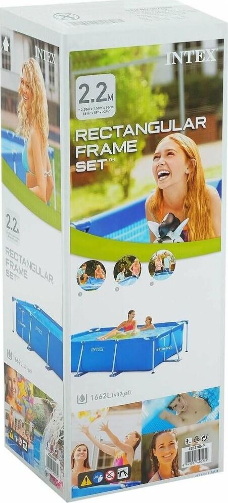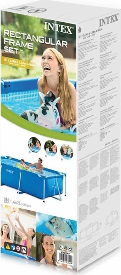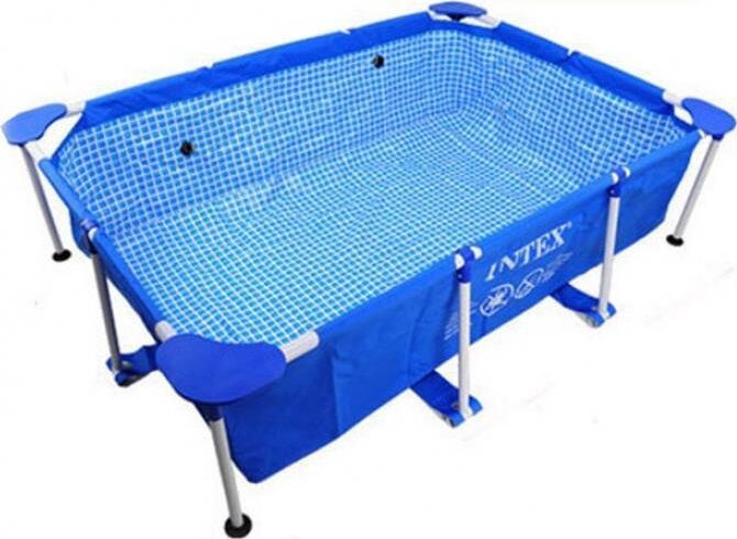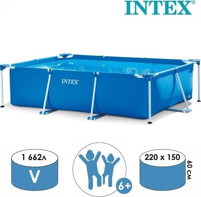 Прямоугольный каркасный бассейн INTEX — это простая конструкция, с которой семейный досуг на природе будет весёлым и приятным. Жарким летним днём он станет комфортной зоной отдыха, где детки будут радостно плескаться вместе с родителями. Размер: 220х150х60 см.