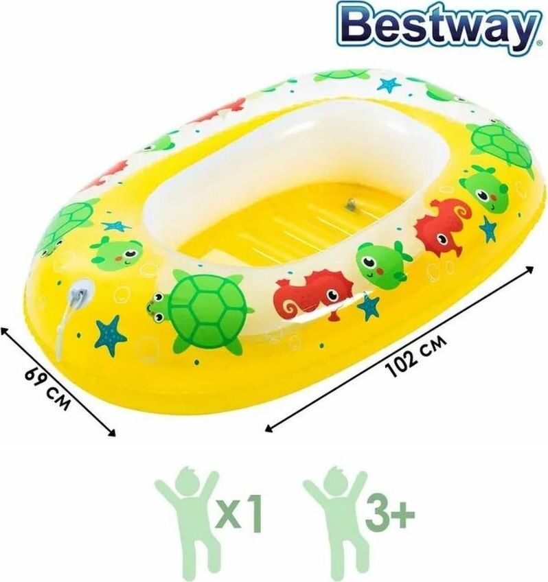 Лодочка для плавания 102 х 69 см, от 3-6 лет, цвета микс 34037 1228879 Опыт использования: менее месяца Достоинства: Детям понравились. Но подходят только лет до 5 детям. Недостатки: Через пять раз использования (активного) у лодок оторвалось дно,хотя сами лодки не продырявились. Теперь у нас два круга. Комментарий: Качество не очень.