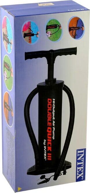 Ручной насос может накачать любое изделие INTEX. Насос имеет упор для ног и качает в 2 такта: при поднятии рукоятки вверх и при опускании вниз. Размер: 48 см.