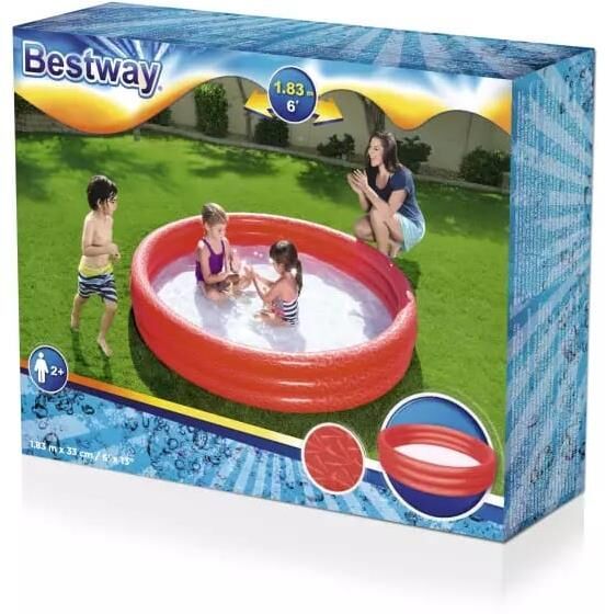 Надувной круглый однотонный бассейн Bestway (широкий) для детей от 2 лет. Изготовлен из высококачественного винила, устойчивый, надежный и безопасный. Имеет мягкие стенки с широким бортиком, жесткое дно из ПВХ-пленки.Возраст: от 2 лет. Высота борта: 33 см. Материал: винил. Размер: 183х33 см. Объём: 480 л. Вес: 1,74 кг.