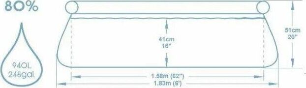 Для детей старше 6-ти лет. Объем бассейна (80%): 940 л (248 галлонов). Установка за 10 минут. Боковые стенки из материала Tritech™ – 3-слойного материала, состоящего из слоев износостойкого ПВХ и полиэстера. Чаша бассейна поддерживается надувным верхним кольцом. Выберите ровную поверхность, надуйте верхнее кольцо, и бассейн подымется при наполнении водой. В комплект входят: 1 бассейн, 1 ремонтная заплата.