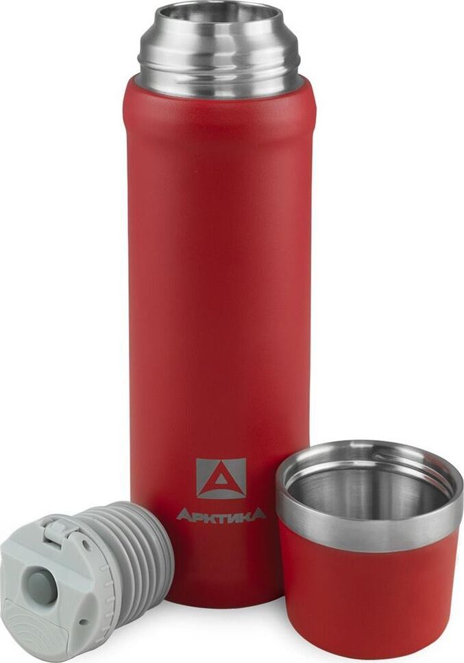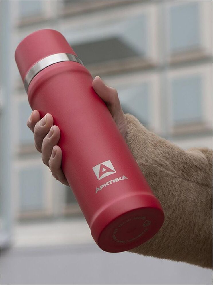 Термос классический для напитков с узким горлом и пробкой с кнопкой, объем 0,6 л.
