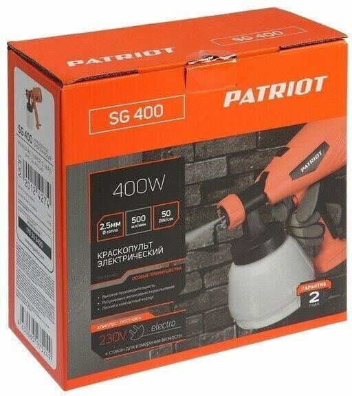 Макс. расход, мл/мин 500. Производительность, мл/мин 500. Объем резервуара для краски, мл 800. Допустимая вязкость краски, DIN/сек 50. Диаметр сопла, мм 2,5. Регулировка интенсивности распыления Да. Мощность, Вт 400. Габариты упаковки, cм 13х27,7х28. Гарантия 2 года. Вес с упаковкой, кг 1.5.