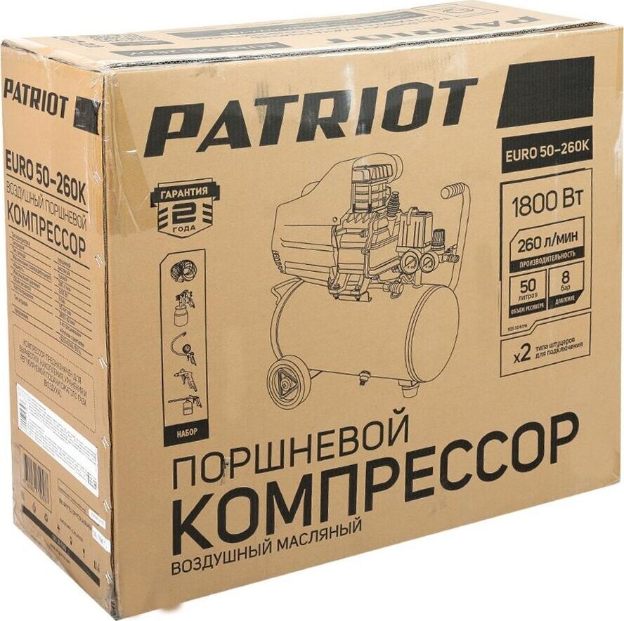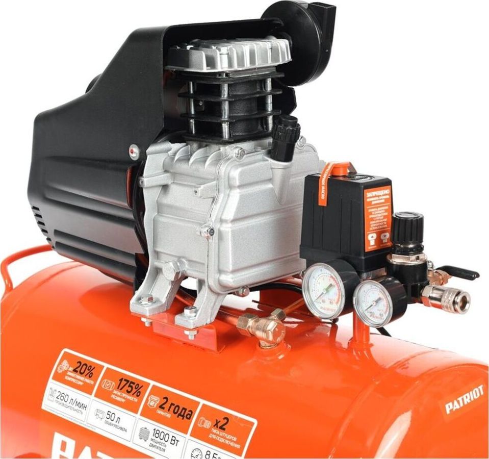Макс. производительность, л/мин 260. Макс. мощность, кВт 1,8. Напряжение питания от сети, В 220. Частота вращения, об/мин 2850. Транспортировочные колеса Да. Регулировка давления Да. Макс. рабочее давление, бар 8. Манометр Да. Тип смазки масляный. Тип привода коаксиальный (прямой). Количество цилиндров/ступеней, шт 1/1. Объем ресивера, л 50. Тип штуцера быстросъемный и "елочка" с вентилем. Вес, кг 30.2.