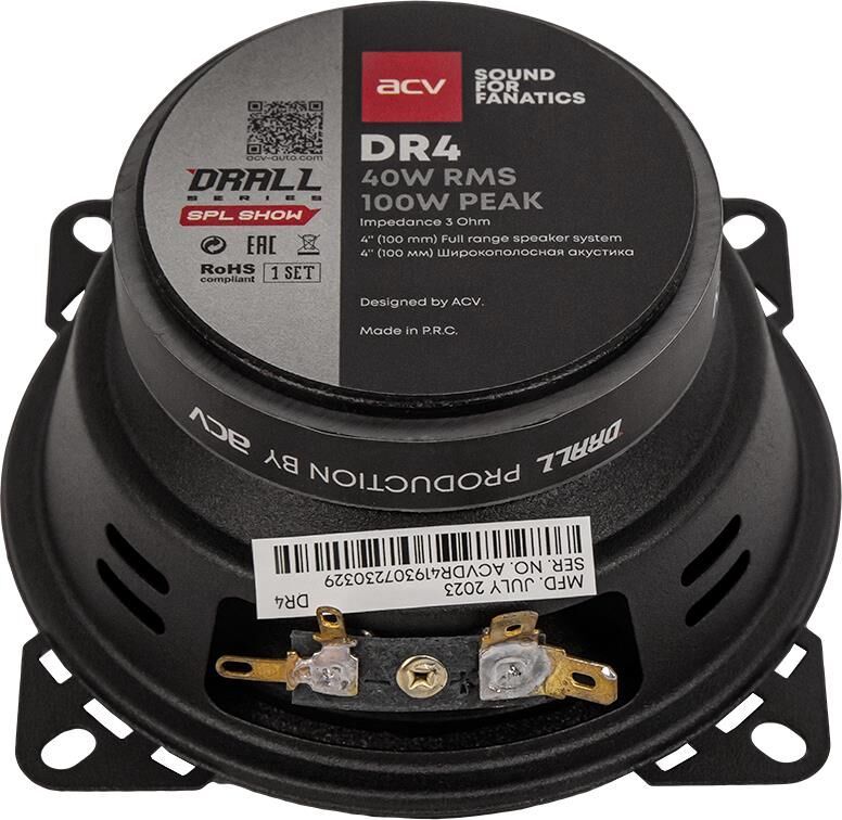 Пиковая мощность: 100 Вт Номинальная мощность: 40 Вт Чувствительность: 94 ( 1) Импеданс: 3 Ом Особенности модели Звуковая катушка: KSV 25.5 мм Диффузор: Прессованная целлюлоза Материал подвеса: Резина Магнит: Ферритовый 70*12 мм Диапазон частот: 100 - 20000 Гц Общие характеристики Количество полос: 1-полосная Диаметр монтажного отверстия: 94 мм Монтажная глубина: 50 мм Общая глубина: 52 мм Внешний диаметр: 102 мм