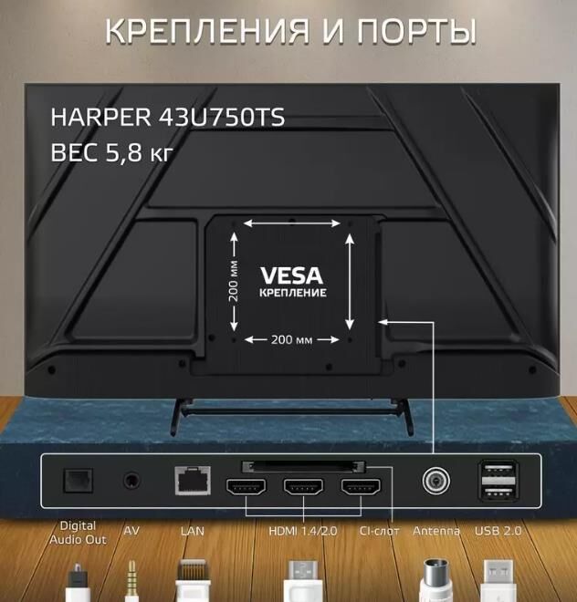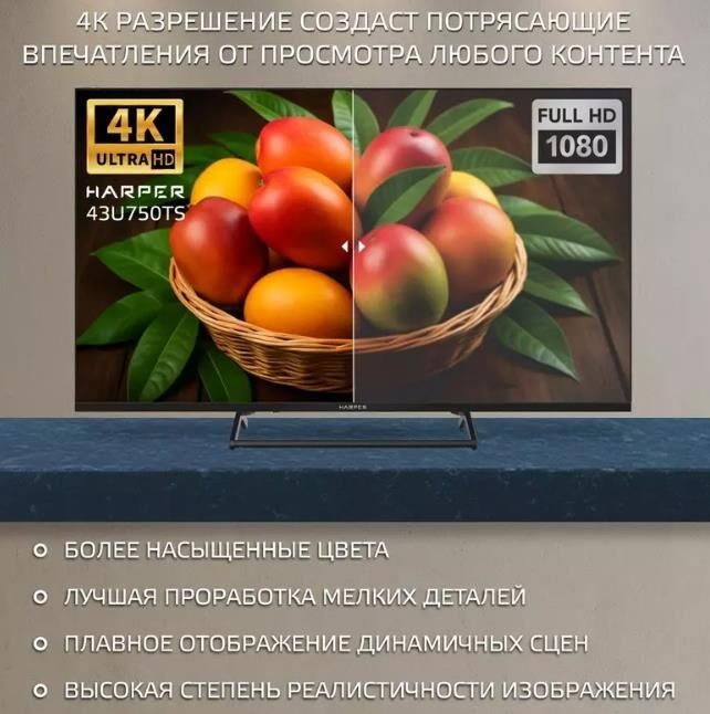 Телевизор.43" (109см)/ ULTRA HD 3840x21600/ Official Android v9.0 - SMART TV / цифровой тюнер DVB-T2/DVB-C/ Запись ТВ программ / Электронный Телегид/ Отложенный просмотр; слот CI+ для модуля условного доступа/ формат экрана: 16: 9/4: 3/auto/ Авто динамическая контрастность: 90000: 1 / Количество цветов 1 млрд./ яркость: 250 кд/м2/ угол обзора (Г/В): 178°/178°/ время отклика: 8 мс/ Частота обновления экрана - 60Гц/ 3D цифровой фильтр/ VESA 200 X 200 / русское; английское меню/ телетекст/ Внутреняя память 8G) входы: антенный /разъемы для подключения: 1 USB/ 3 HDMI/ Разъем для наушников jack 3,5 / Цифровой аудио выход /вход CI+ (common interface) / Встроенная акустика 16 Вт (2x8 Вт)