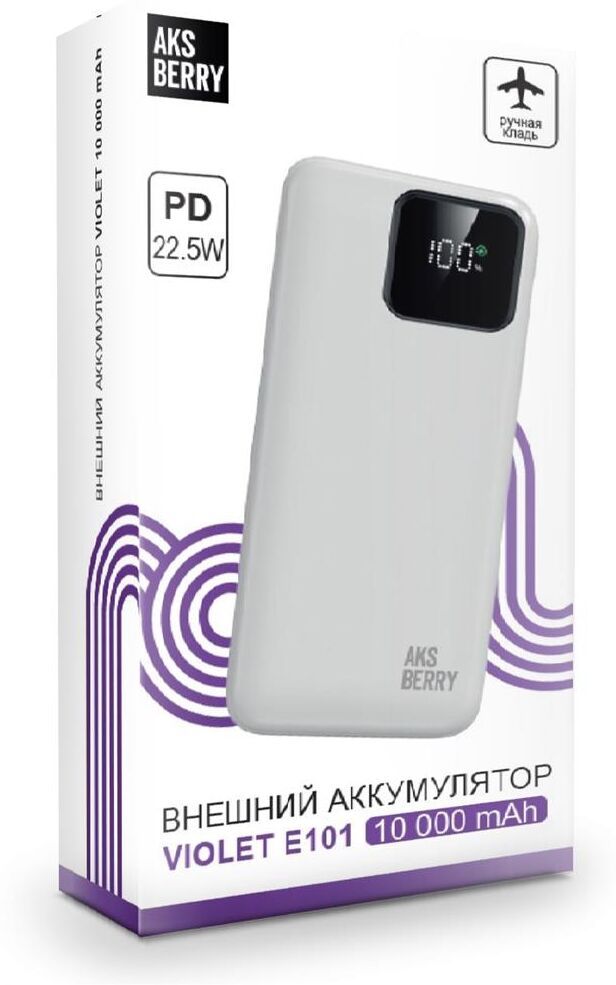 Внешний АКБ Aksberry E101 Violet быстрая зарядка PD22.5W/QC22.5W с дисплеем 10000mAh (белый)