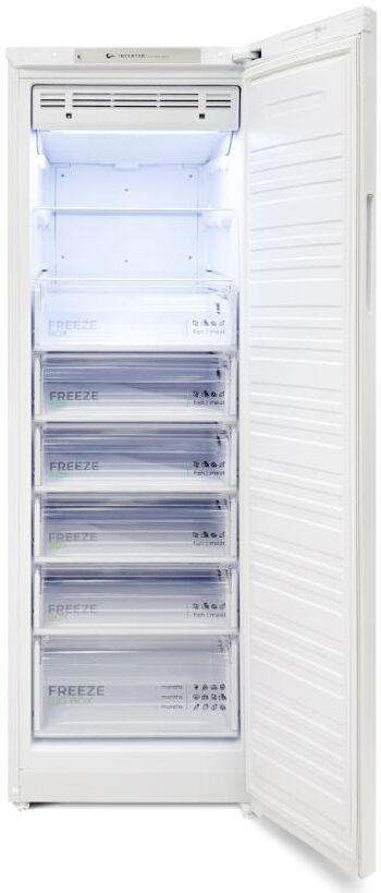 Морозильник с функцией холодильника; Габариты ШхВхГ, см: 60х180х62,5; Цвет: Белый; Количество компрессоров: 1; Дисплей; Объем морозильной камеры: 280 л; Общий полезный объем: 215 л; Инверторный компрессор; Управление: Электронное; Количество камер: 1; Система Full No Frost; Мощность замораживания: 21 кг/сутки; Класс энергоэффективности: A+; Возможность перевешивания двери; Автономное сохранение холода: 12 ч; Минимальная температура в морозильной камере: -20 °C; Сигнализация повышения температуры в морозильной камере; Количество ящиков в морозильном отделении: 6; Количество полок в холодильном отделении: 2; Материал полок: стекло/пластик; Блокировка от детей; Режим "Быстрая заморозка"; Суточный расход электроэнергии, при температуре окружающего воздуха 24°C: 76 кВтч; Индикация