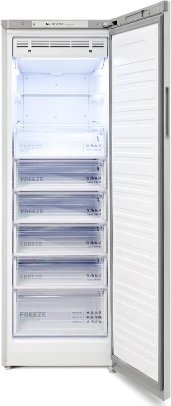 Морозильник с функцией холодильника; Габариты ШхВхГ, см: 60х180х62,5; Цвет: Металлик; Количество компрессоров: 1; Дисплей; Объем морозильной камеры: 280 л; Общий полезный объем: 215 л; Инверторный компрессор; Управление: Электронное; Количество камер: 1; Система Full No Frost; Мощность замораживания: 21 кг/сутки; Класс энергоэффективности: A+; Возможность перевешивания двери; Автономное сохранение холода: 12 ч; Минимальная температура в морозильной камере: -20 °C; Сигнализация повышения температуры в морозильной камере; Количество ящиков в морозильном отделении: 6; Количество полок в холодильном отделении: 2; Материал полок: стекло/пластик; Блокировка от детей; Режим "Быстрая заморозка"; Суточный расход электроэнергии, при температуре окружающего воздуха 24°C: 76 кВтч; Индикация