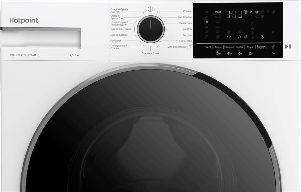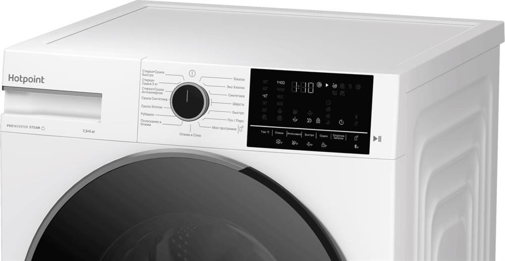 Загрузка при стирке 7,5 кг Загрузка при сушке 5 кг Скорость отжима 1400 оборотов в минуту D7S дисплей (сенсорное управление) Тип мотора: PRO-Inverter (инверторный) Сегмент: slim (узкая стиральнo-сушильная машина) ВхШхГ 84,5х60х49,6 Количество программ: 15, в том числе Хлопок, Эко Хлопок, Синтетика, Быстро, Шерсть, Рубашки, Микс, Освежить, Стирка+Сушка Быстро, Стирка+Сушка Антиаллергия, Стирка+Сушка 5кг, Сушка Синтетика, Сушка Хлопок, Полоскание и Отжим, Отжим и слив Функция: Пар Функция: Легкая глажка Функция: Быстро Функция: Интенсивно Функция: Сушка Функция: Дополнительное полоскание Функция: Очистка барабана Выбор температуры / скорости отжима Отсрочка запуска / Блокировка кнопок Цвет корпуса/панели управления: белый / белый Цвет двери: черный (премиальный люк) Серебряные элементы