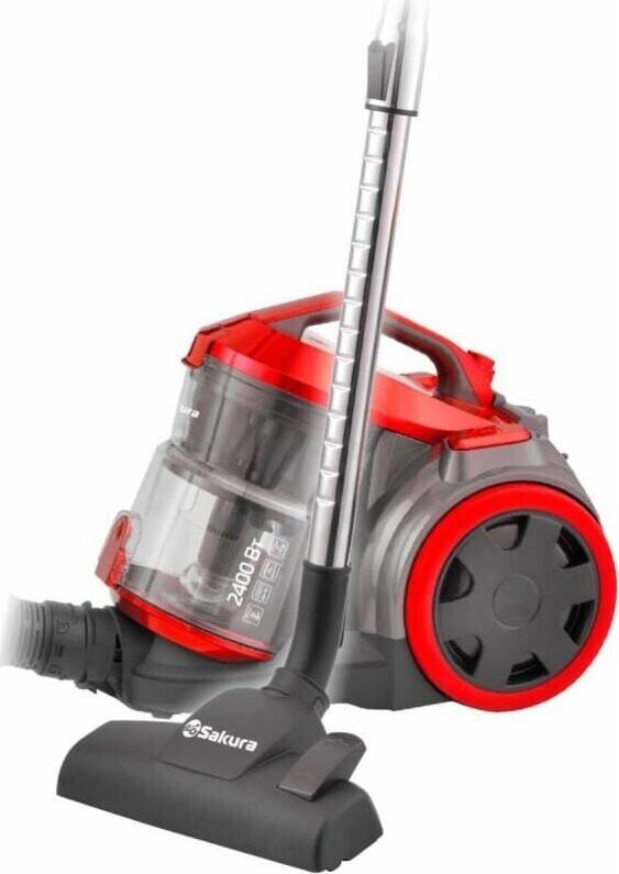 2400Вт, макс.мощность всасывания 450 Вт, HEPA-фильтр, уровень шума ≤78 дБ, контейнер д/сбора пыли 2.0 л (циклонная система), индикатор заполнения пылесборника, металлич. телескопич. труба, автоматическое сматывание шнура. Многофункциональные насадки: насадка ковер/пол, насадка для мебели, щелевая насадка. Цвет корпуса: красный