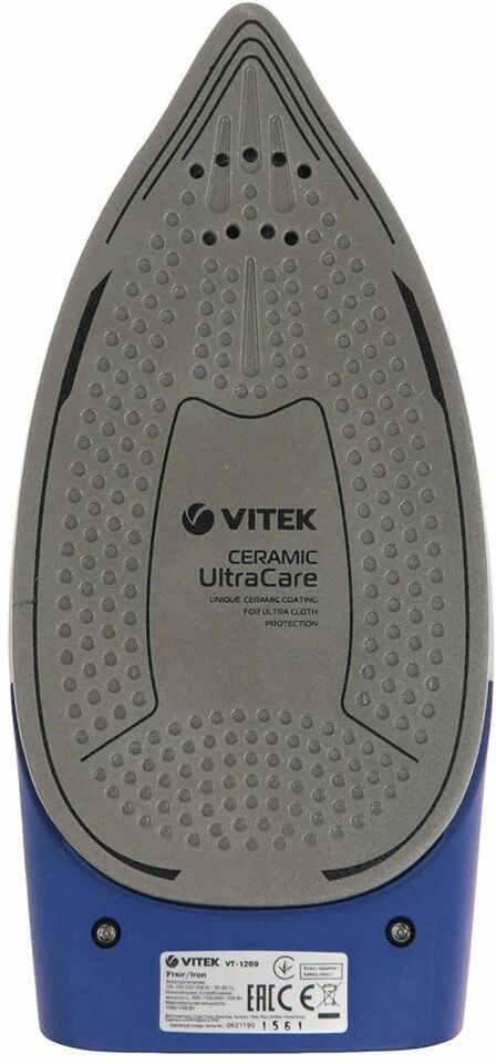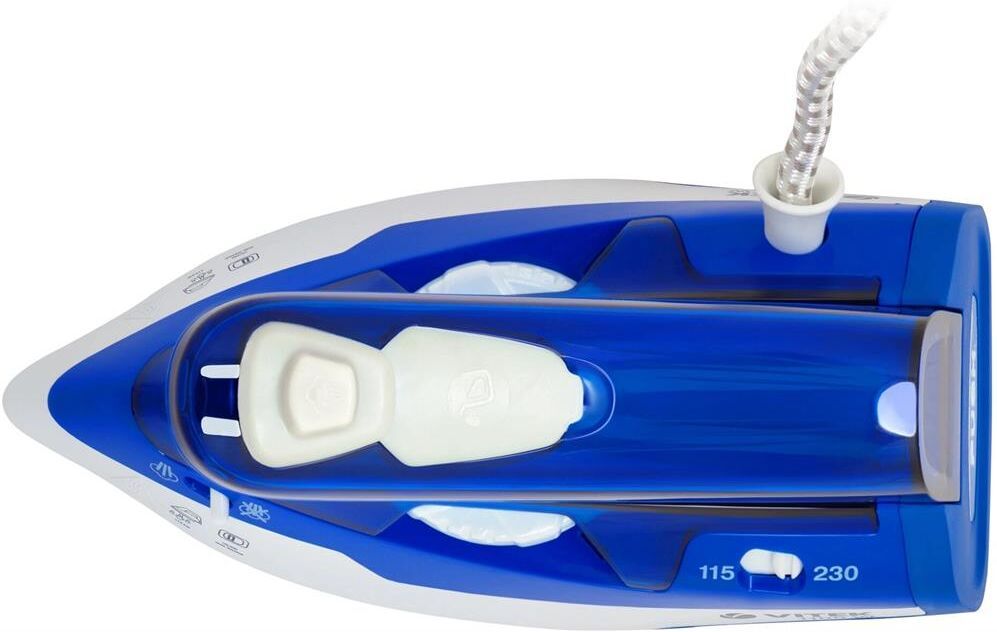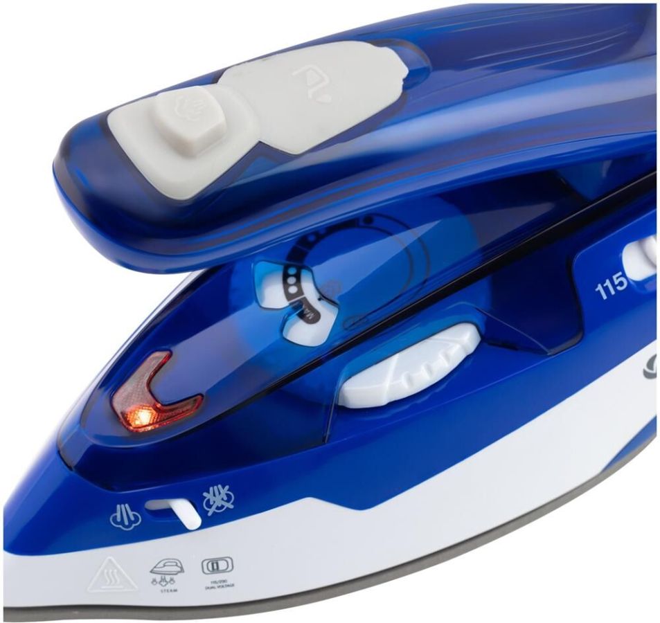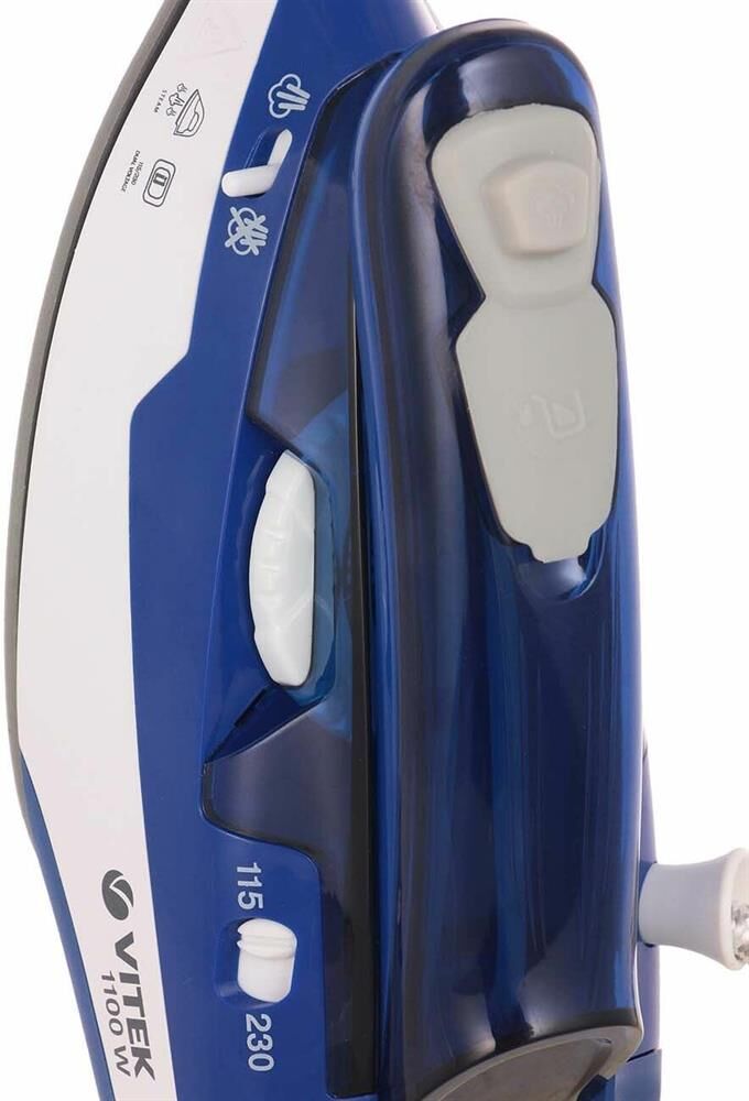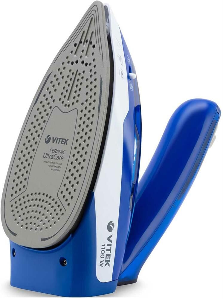 Утюг дорожный. Мощность: 1100 Вт, Емкость для воды: 60 мл, Подошва: Ceramic Ultra Care – уникальное керамическое покрытие для максимальной защиты ткани, Складная ручка. цвет: Синий/белый