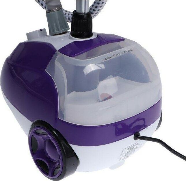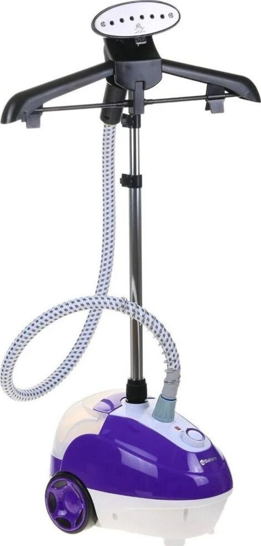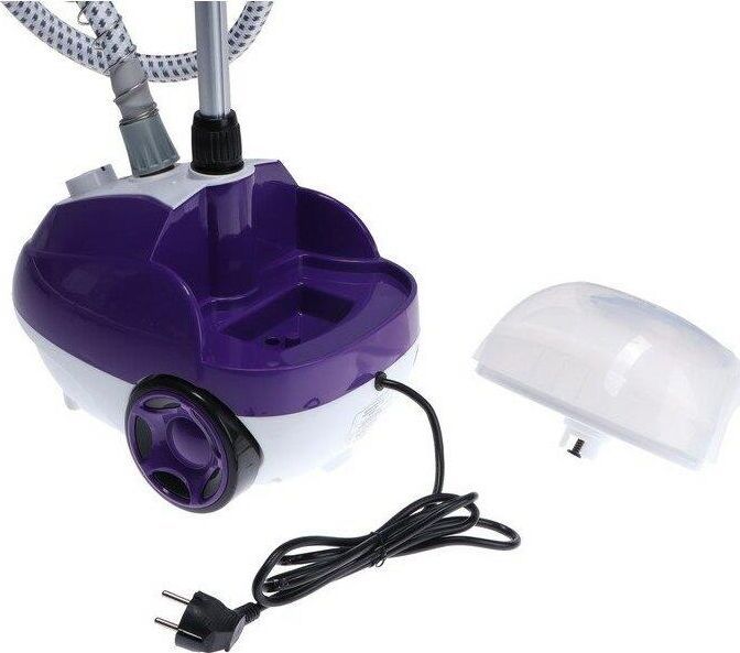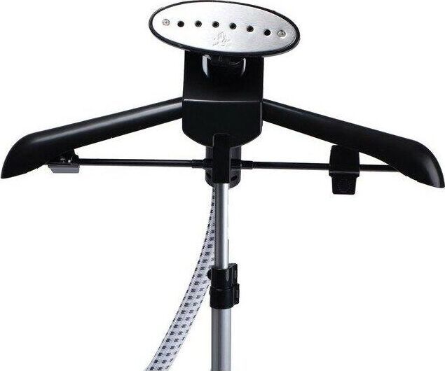 Мощность: 1700 Вт.Тип управления: механический.Объем резервуара для воды: 1,5 л.Готовность к работе: 45 секунд.Время непрерывной работы: до 40 минут. Температура пара: 98?С.Максимальный поток пара: 30 мл/мин.Режимы работы: 2. Горизонтальное отпаривание.Отключение при перегреве.Клапан для слива воды: Материал корпуса: пластик.Дополнительные характеристики: гибкий паровой шланг (1,45 м), металлическая телескопическая штанга, сопло из нержавеющей стали Комплектация: складная вешалка с зажимами для брюк, насадка для проглаживания стрелок на брюках, насадка-щетка, защитная рукавица Компактное хранение.