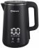 1.8 л, 1500-1800 Вт, закрытый дисковый нагревательный элемент, двухслойный корпус, внутренняя часть корпуса из нержавеющей стали, цифровой дисплей, 5 температурных режимов (45°C, 55°C, 70°C, 85°C, 100°C), поддержание температуры для каждого режима в течение 24 часов, индикация нагрева в процессе работы, эргономичная ручка, автоотключение при закипании и защита от включения без воды. Цвет корпуса: черный. Длина шнура 0,7 м.