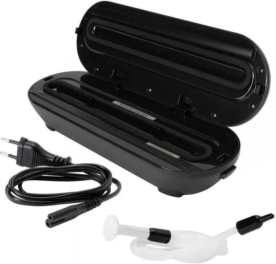 Современный вакуумный упаковщик R2201-000 с сенсорным управлением и мощностью 125 Вт обеспечивает профессиональное хранение продуктов. Устройство в черном пластиковом корпусе работает с производительностью 6-7 л/мин, создавая вакуумное давление 80 кПа и формируя прочный двойной шов шириной 2х1,5 мм. Особенности включают три режима работы (сухой, влажный, супервлажный), автоматическое запаивание и возможность упаковки продуктов различной консистенции в пакеты шириной до 300 мм. Интуитивно понятное управление с пятью кнопками («Режим», «Вакуум», «Упаковка», «Авто», «Старт/Стоп») делает процесс простым и удобным. В комплекте: вакуумная трубка, 10 вакуумных пакетов, руководство пользователя и две коробки (транспортировочная и подарочная). Низкий уровень шума (менее 68 дБ) позволяет использовать устройство без дискомфорта. Идеальное решение для продления свежести продуктов и компактного хранения.