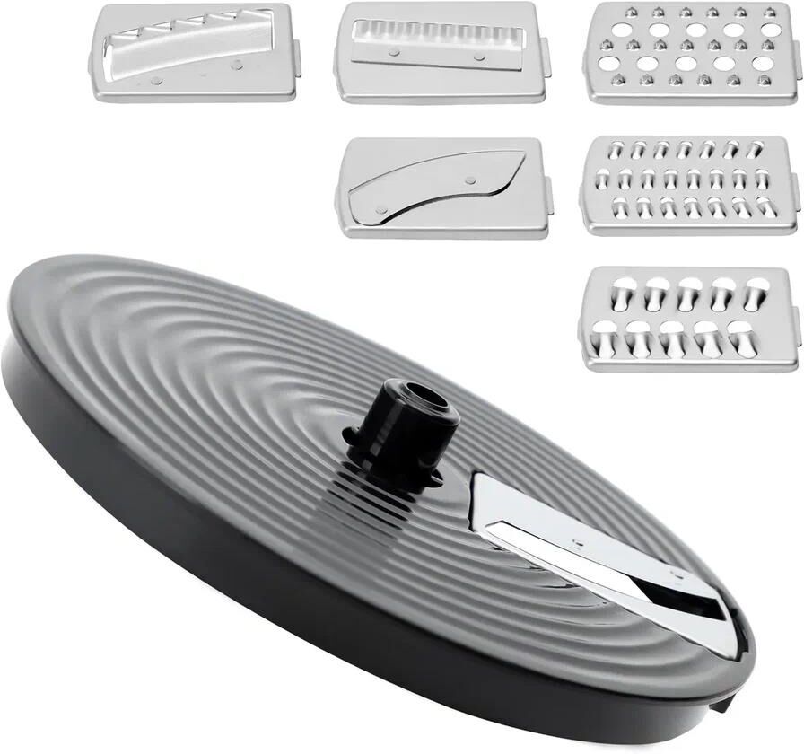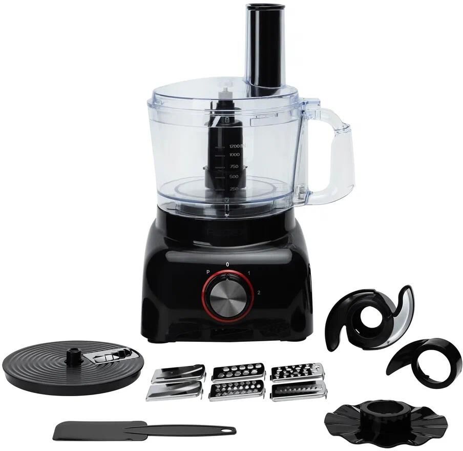 Кухонный комбайн с механическим управлением и мощностью 600 Вт станет отличным помощником на кухне. Он оснащен чашей объемом 1,2 л, изготовленной из пластика, а корпус также выполнен из прочного пластика. Лезвия и нож для измельчения сделаны из нержавеющей стали, а нож для теста - из пластика. Основной цвет устройства - черный, что придает ему стильный вид. Комбайн предлагает 2 скорости (1400 и 1800 об/мин) и импульсный режим для удобного контроля процесса приготовления. Среди особенностей - защитная крышка от брызг, нескользящие ножки для устойчивости, но важно помнить, что прибор не подходит для измельчения орехов, льда и горячей пищи. В комплект входят: основание с чашей, диск-эмульгатор, нож для измельчения, нож для теста, пластиковая пластина для лезвий, набор из 7 лезвий для нарезки (включая тёрку для драников, волнообразное лезвие и насадки для картофеля фри), лопатка, руководство пользователя и две коробки - подарочная и транспортировочная.