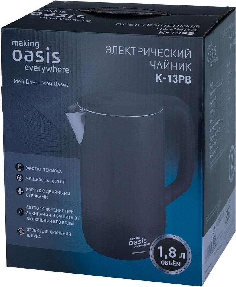 Основной цвет черный Дополнительный цвет серебристый Рисунок на корпусе нет Основные характеристики Объем 1.8 л Мощность 1800 Вт Количество стенок 2 Материал корпуса металл\пластик Тип нагревательного элемента скрытый нагревательный элемент Покрытие нагревательного элемента нержавеющая сталь Фильтр в носике есть Материал колбы нержавеющая сталь Материал фильтра нержавеющая сталь Особенности крышки открытие крышки на 90° Управление и функции Терморегулятор нет Плавная регулировка температуры нет Количество температурных режимов 1 Температура нагрева воды 100 °C Поддержание температуры нет Подставка с электронным управлением нет Вращение на подставке есть Длительное кипячение нет Отложенный старт нет Автоматическое отключение есть Защита автоотключение при закипании, автоотключение при отсутствии воды Управление со смартфона нет Приложение для управления нет Голосовой помощник нет Дисплей нет Световая индикация работы Звуковой сигнал нет