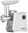 1600 Вт, функция "реверс", корпус из пластика, пластик.лоток, метал. шнек, толкатель, нож из нерж.стали, металл диски для измельчения (5 мм и 7 мм), отключение при перегреве. Аксессуары: насадки для кеббе и для сосисок. Производительность: 0.9кг/мин. Цвет: белый. Длина шнура 0,8м.