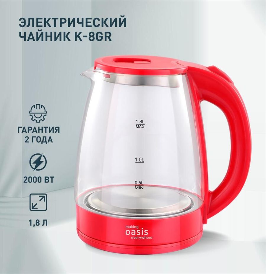 Объем 1,8 литра Корпус из термостойкого стекла Мощность 2000 Вт Автоотключение Защита от включения без воды 360° поворот корпуса Световая индикация Цвет Красный Материал полости Термостойкое стекло Параметры электросети, В/Гц 220/50 Мощность, Вт 2000 Объем, л 1,8