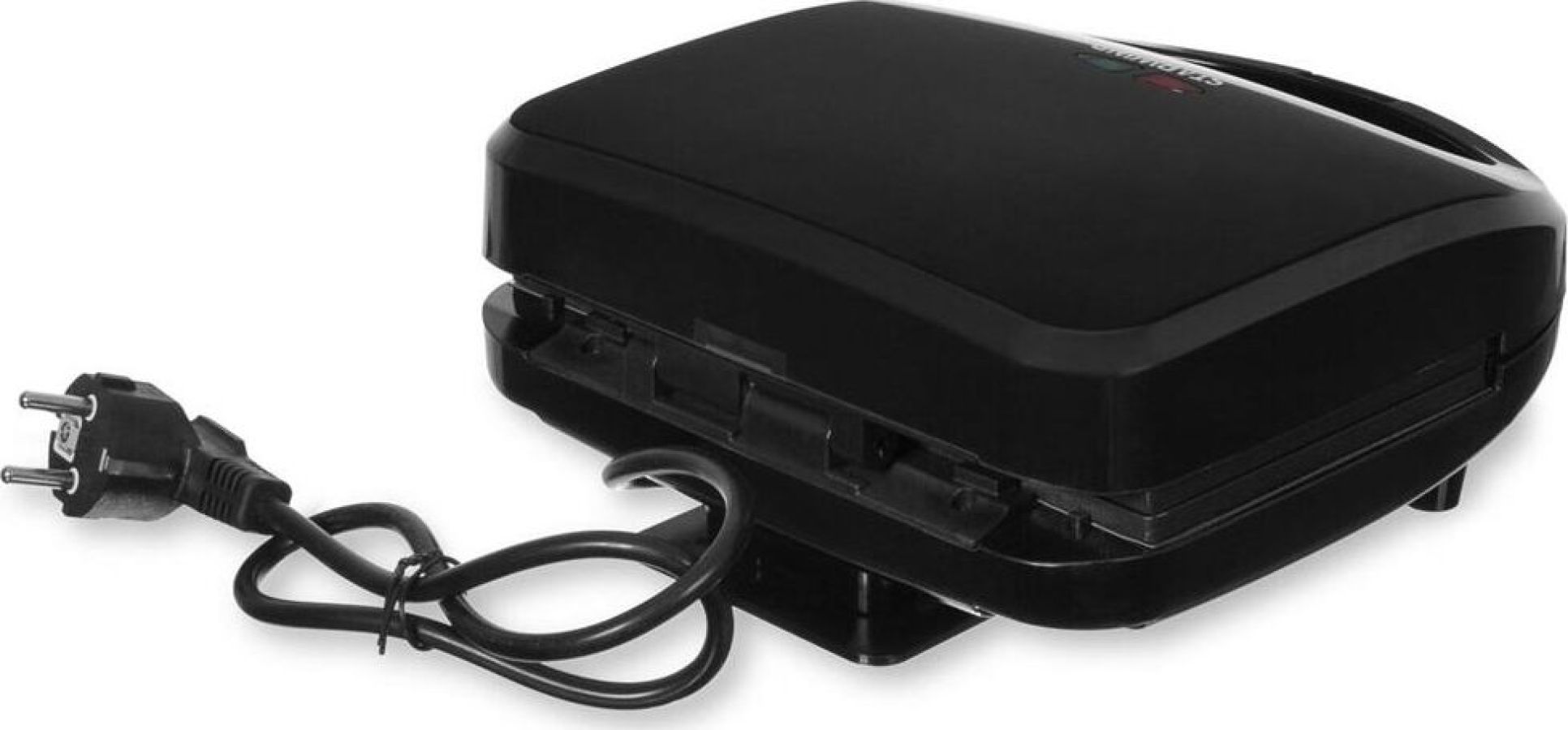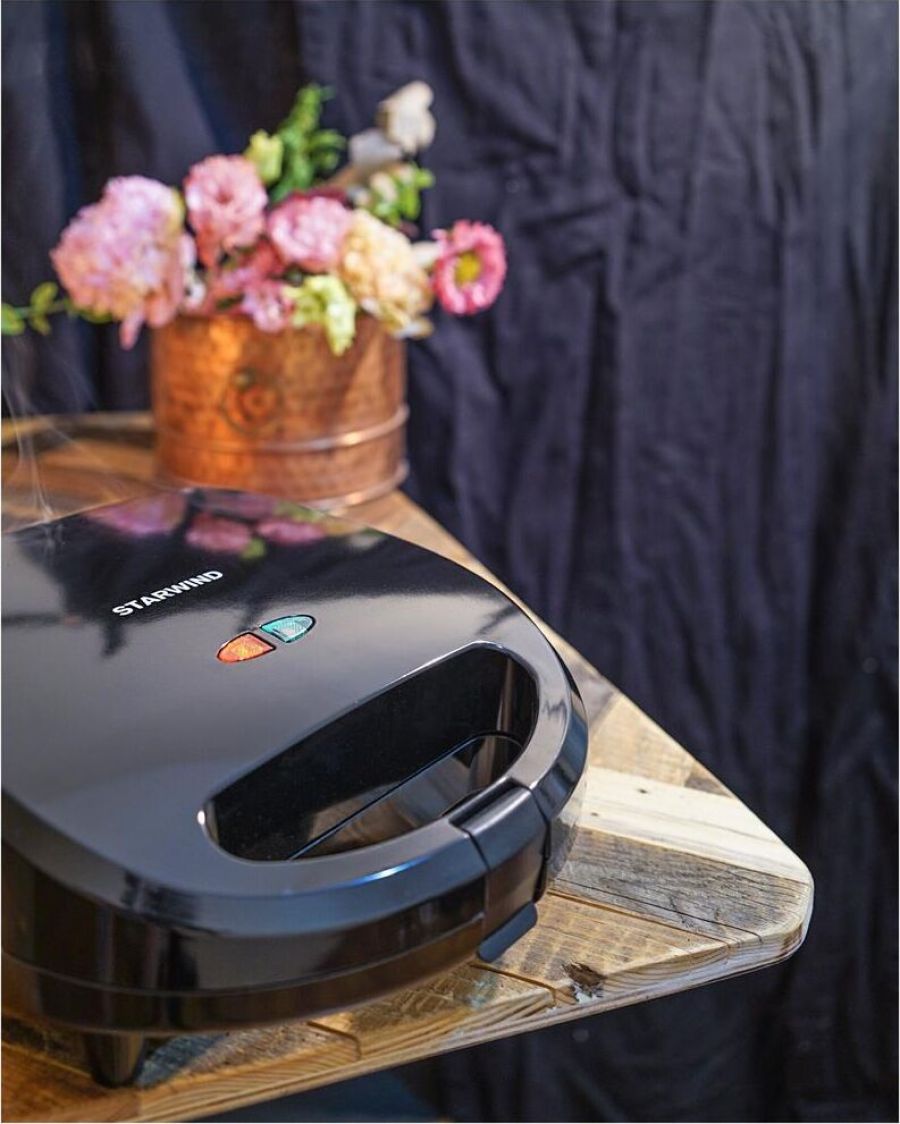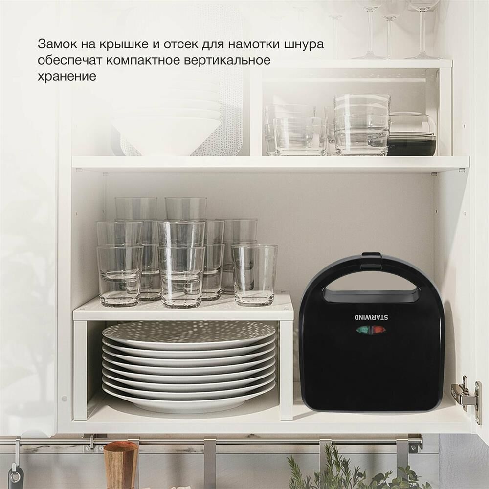Мощность 750 Вт Съемные формы : пластины для вафель, сэндвичей, гриля 4 отделения для бутербродов 2 отделения для вафель Индикатор нагрева Автоматическое отключение (защитное) Замок фиксации закрытия крышки Цвет черный Срок гарантии 12 мес Ненагревающаяся ручка