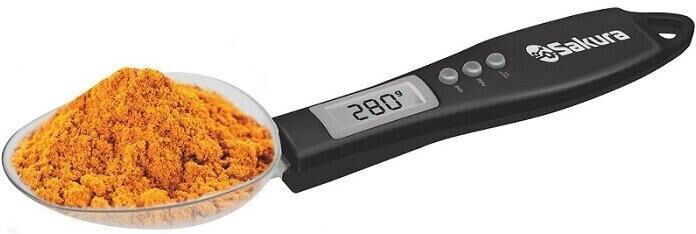 Электронные, макс.нагрузка 300 г, цена деления 0.1 г, LCD дисплей, высокоточные датчики, большая вместительная ложка, функция тарирования, индикатор перегрузки и низкого заряда батареи, автоотключение, питание 2 x AAA, пластиковый корпус, цвет: черный / красный