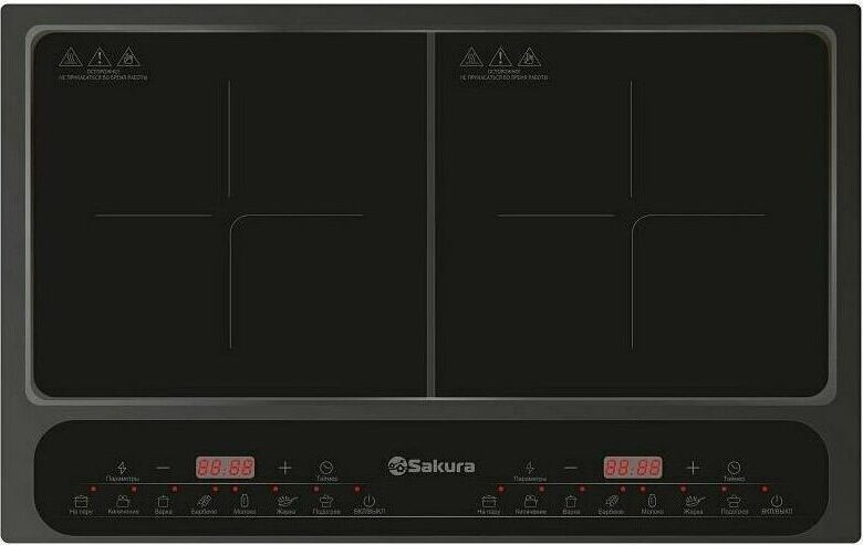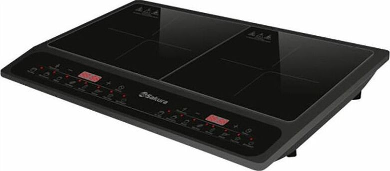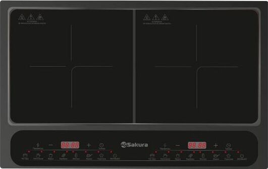 Плита электрическая с индукционным нагревательным элементом, мощность 2000+1500 Вт, индукционный нагревательный элемент, LED-дисплей, корпус из закаленного стекла, индикатор работы, регулировка мощности, функция таймера, отсрочка старта, автоотключение. Подходит для посуды диаметром от 12 до 26 см. Макс.нагрузка: не более 8 кг на каждую конфорку.