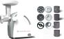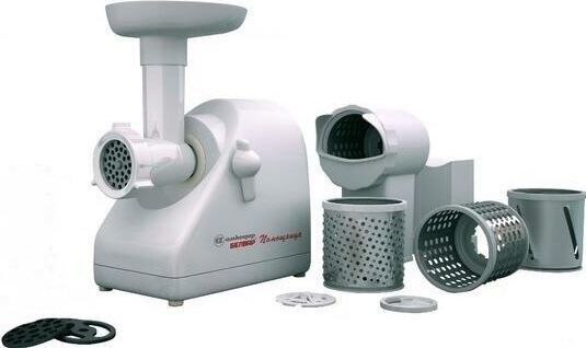 Электромясорубка КЭМ-П2У 305 (с ручкой) Пиковая мощность: 300Вт Номинальная мощность: 1800Вт Реверс: есть Цвет: бело-серый Решетки: 2 Шинковки: 4