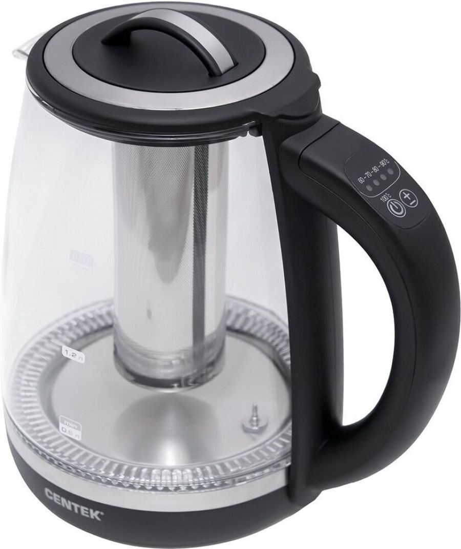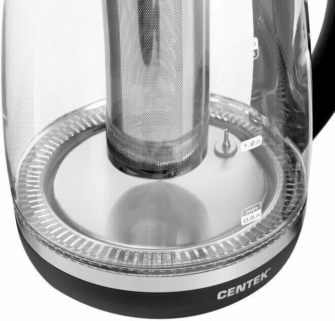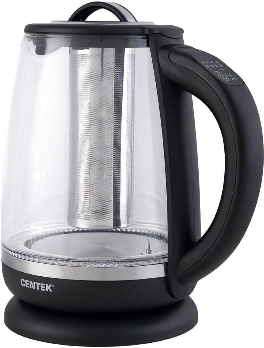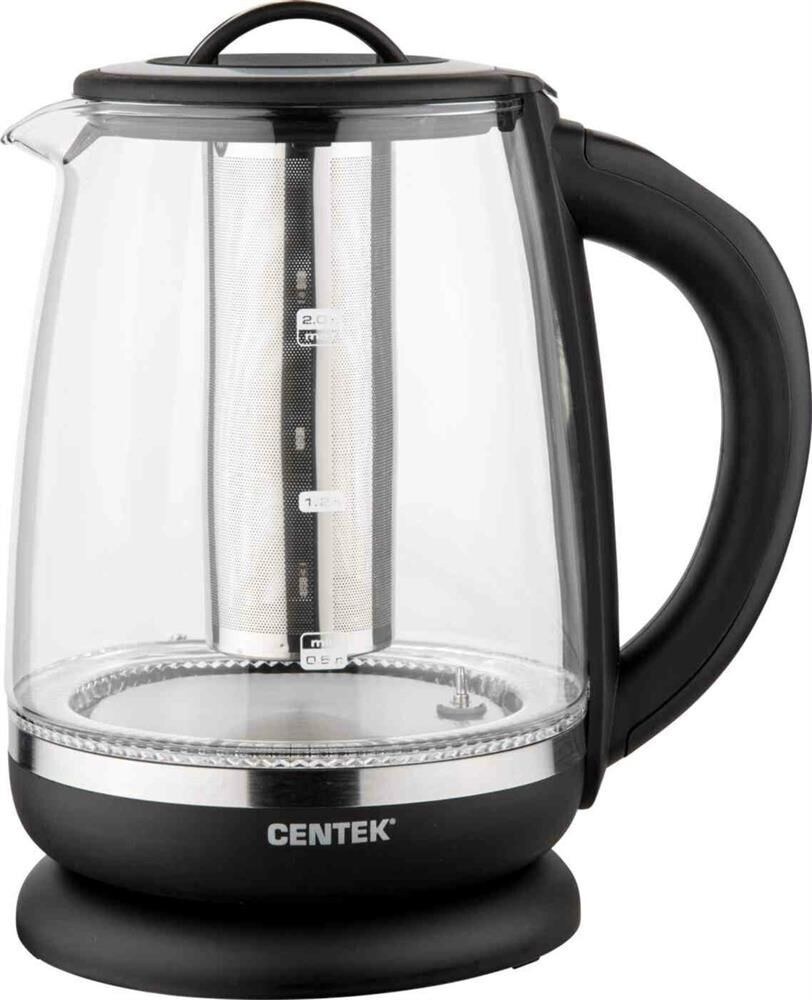Чайник Centek CT-0017 Мощность2200 Вт Объем2,0 л Защита от включения без воды Внутренняя LED-подсветка Скрытый нагревательный элемент Кнопки управления на ручке Высокопрочная стеклянная колба
