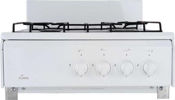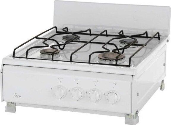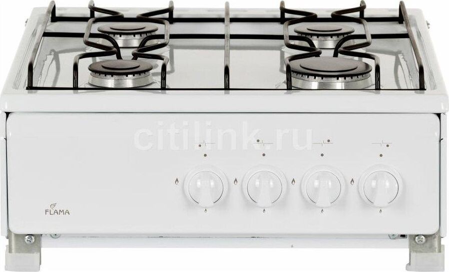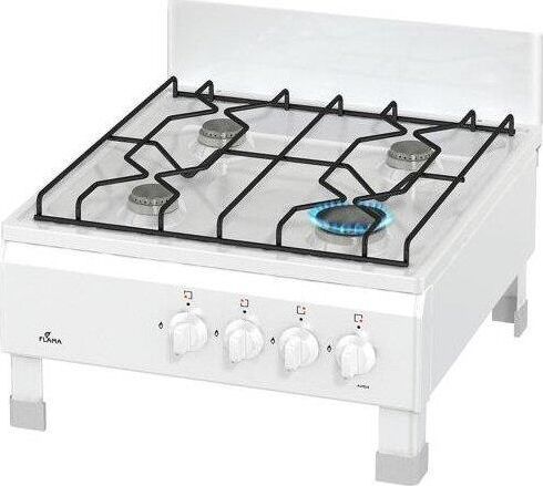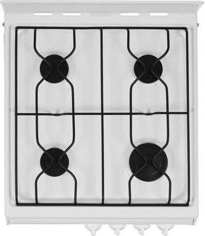 Размеры(ВхШхГ) 20х50х57см, газовая плита, 4 конфорки, решетки проволочные, цвет белый, эмалированная рабочая поверхность