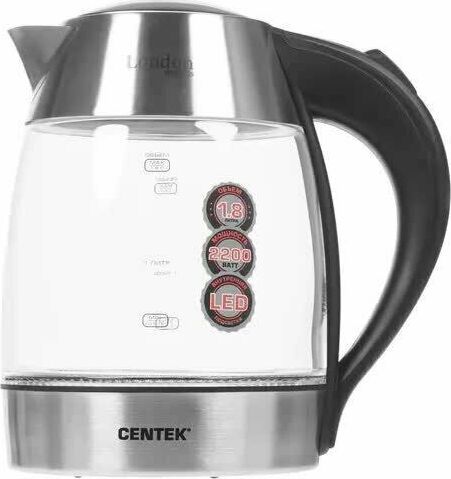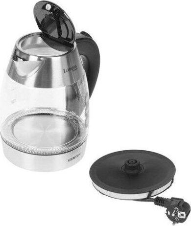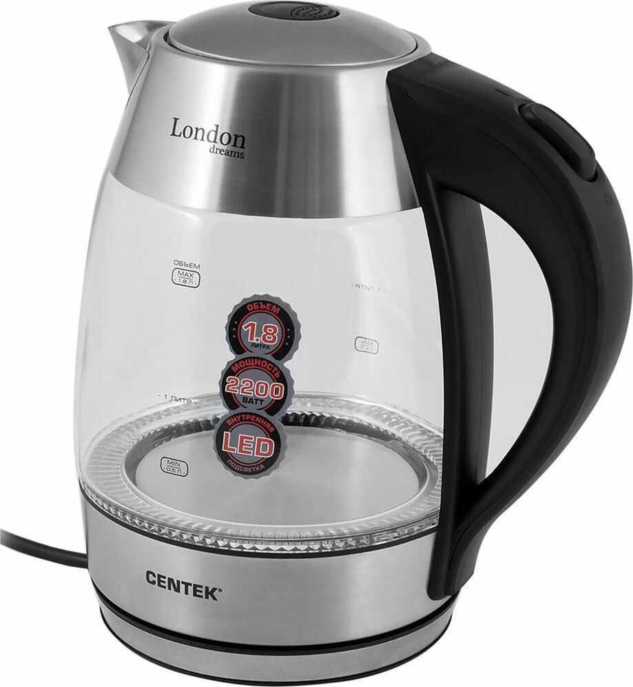 Мощность 2200 Вт. Объем 1,7 л. Защита от включения без воды. Внутренняя LED-подсветка. Фильтр от накипи.
