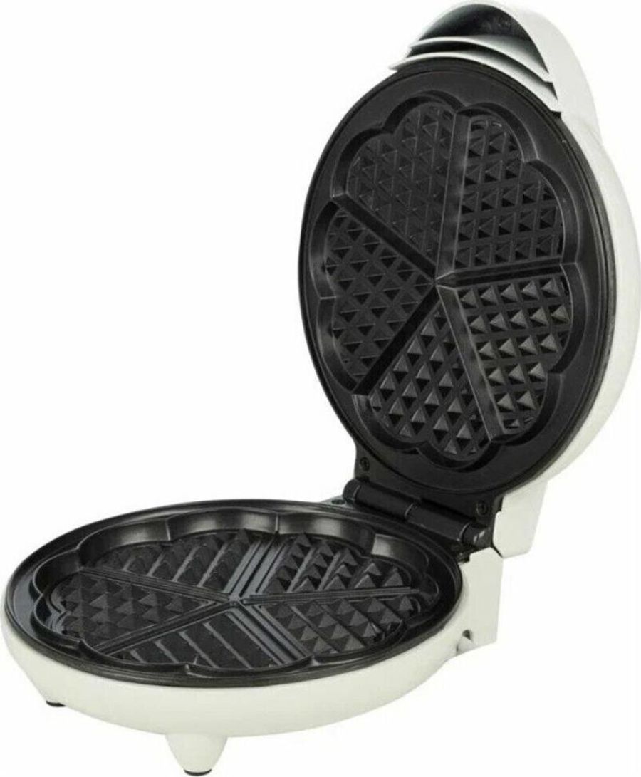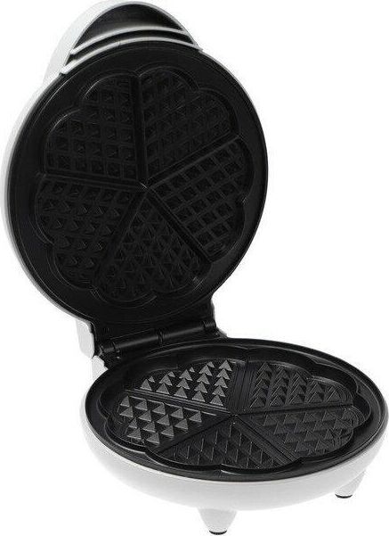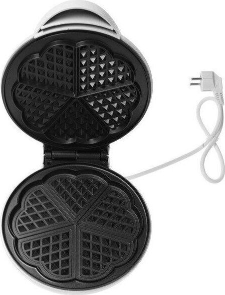 Формы для приготовления вафель с антипригарным покрытием , Световой индикатор работы и нагрева , Пять коржей в форме сердечек, Многофункциональность (готовит: скандинавские вафли, сэндвичи, печенье, коржики и т.п.) , Ненагревающиеся ручки, Прорезиненные ножки, Корпус из термостойкого пластика, Мощность 1200Вт.